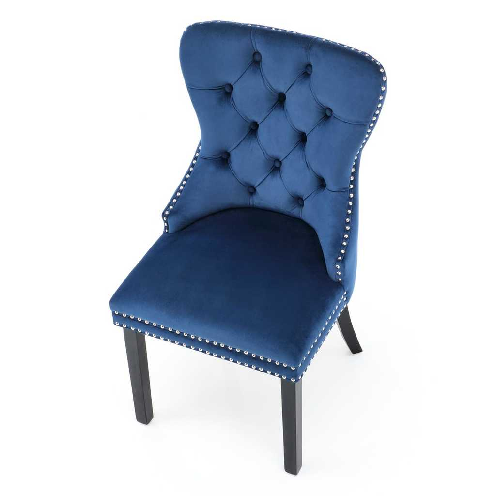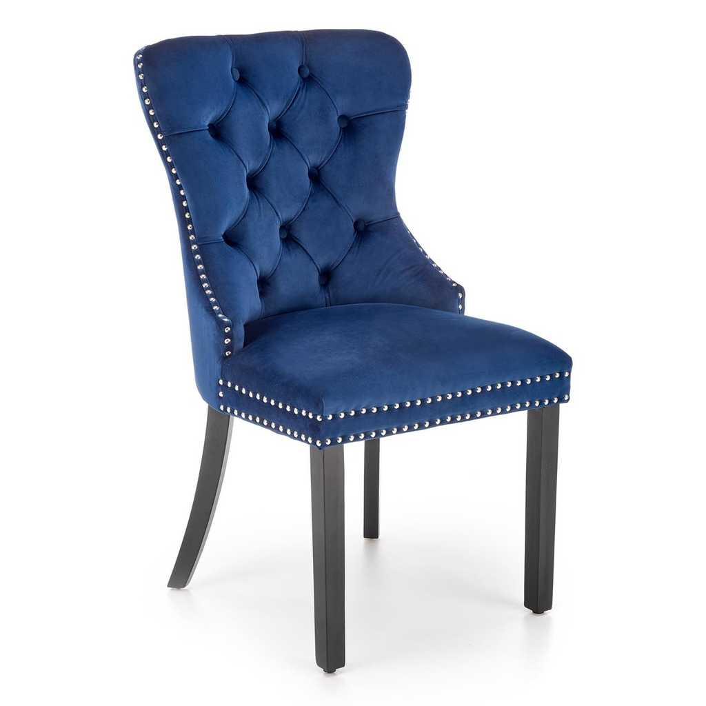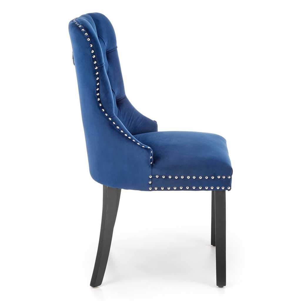 Potah je pak ze sametové látky, která židli dodává na prestižnosti. Opěradlo zdobí výrazné prošívání a jeho křivky zvýrazňuje lemování kovovými cvočky.