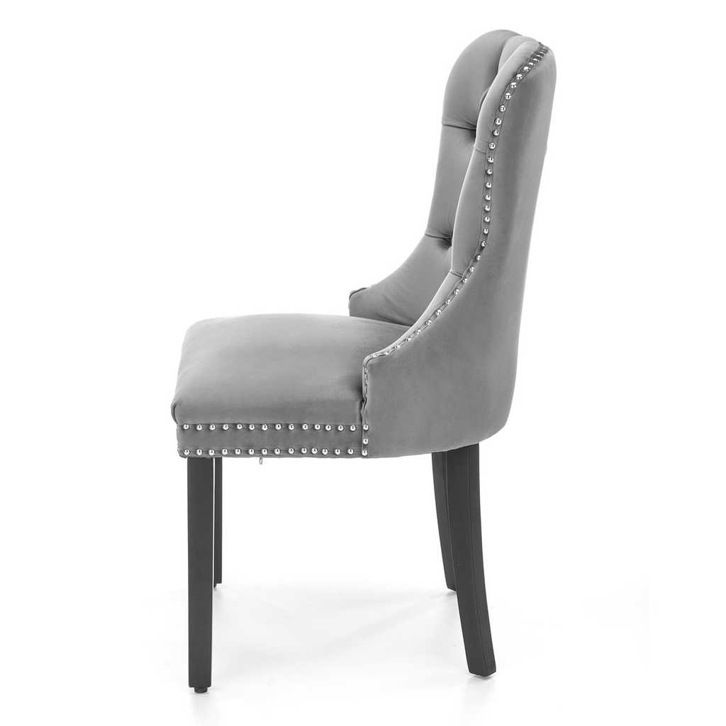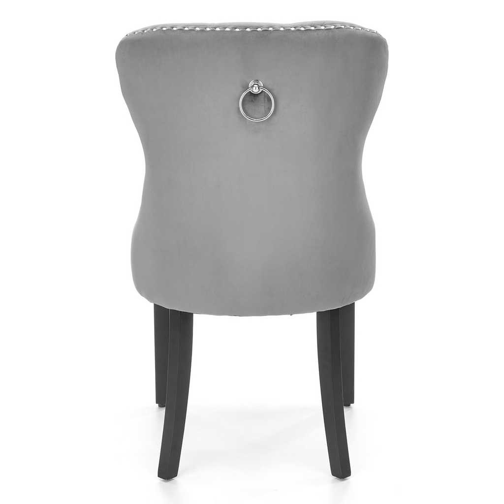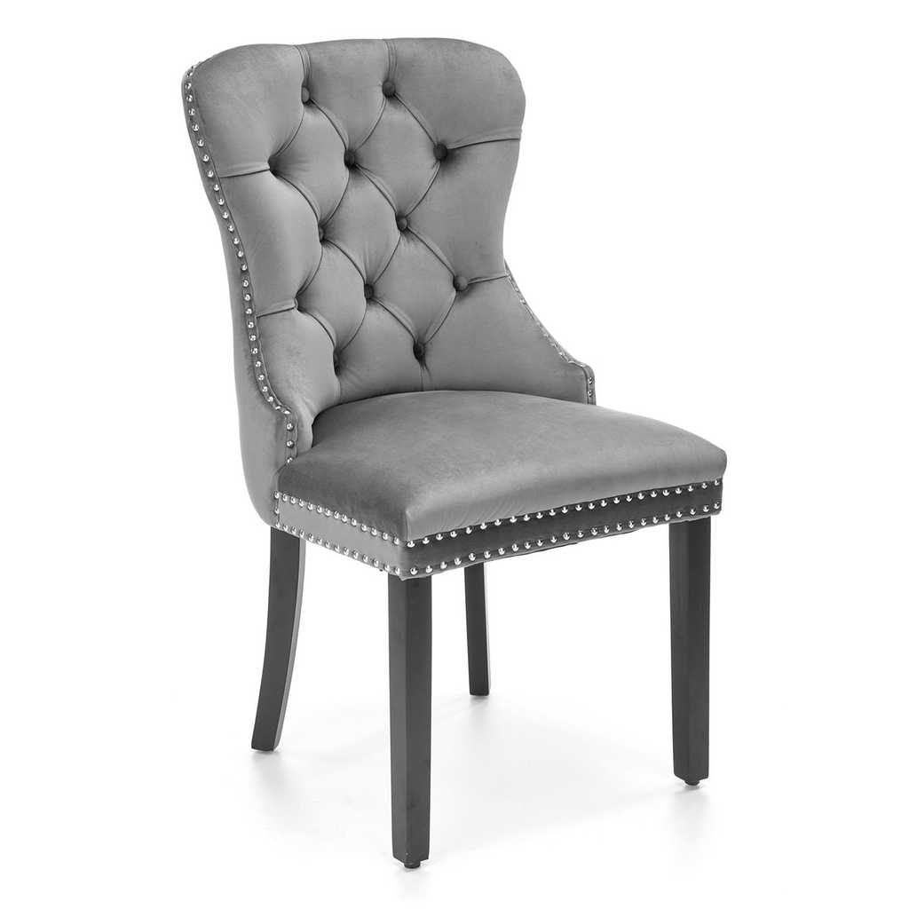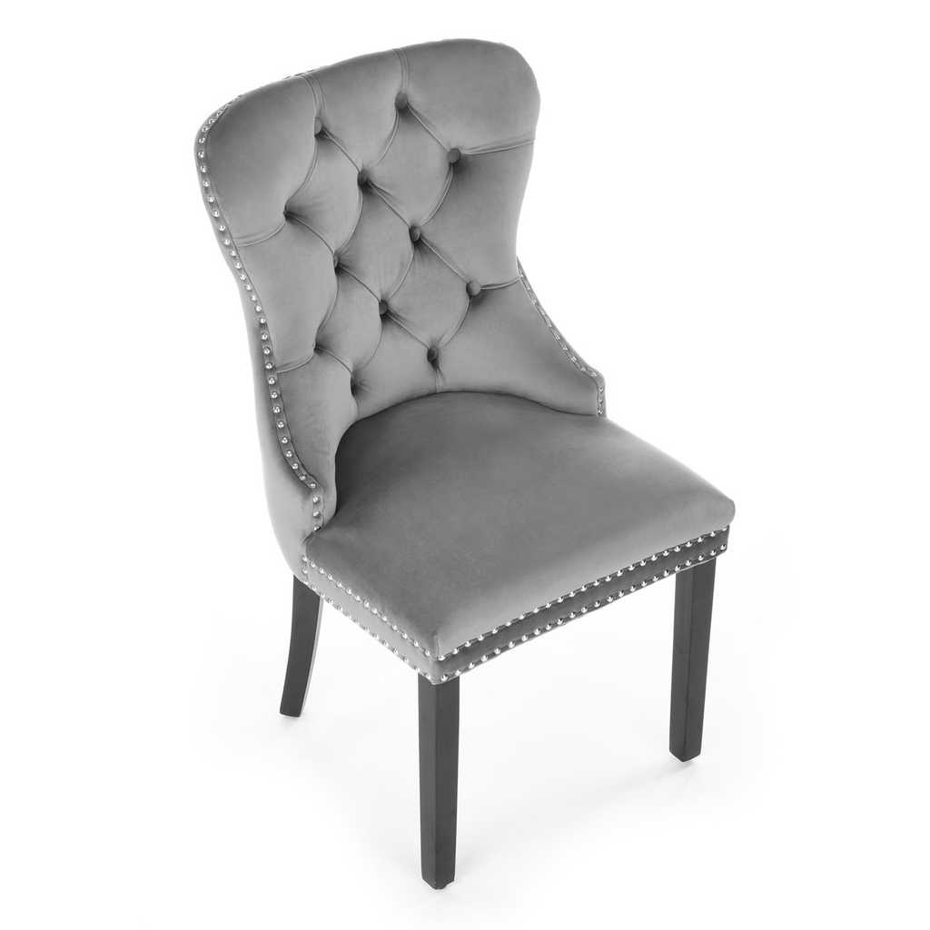Potah je pak ze sametové látky, která židli dodává na prestižnosti. Opěradlo zdobí výrazné prošívání a jeho křivky zvýrazňuje lemování kovovými cvočky.