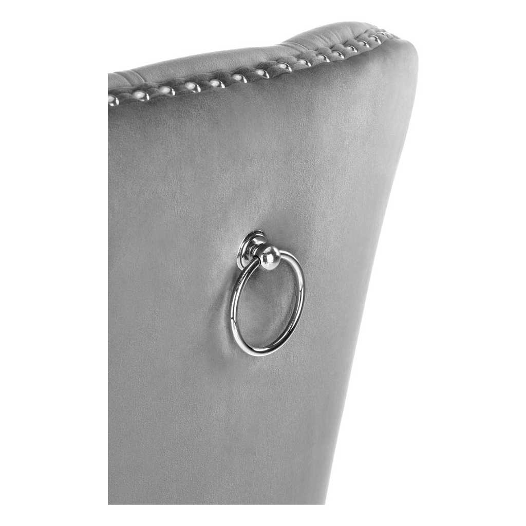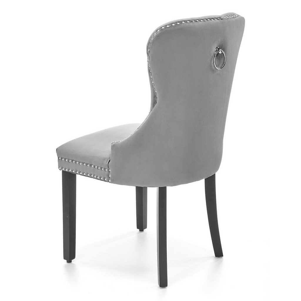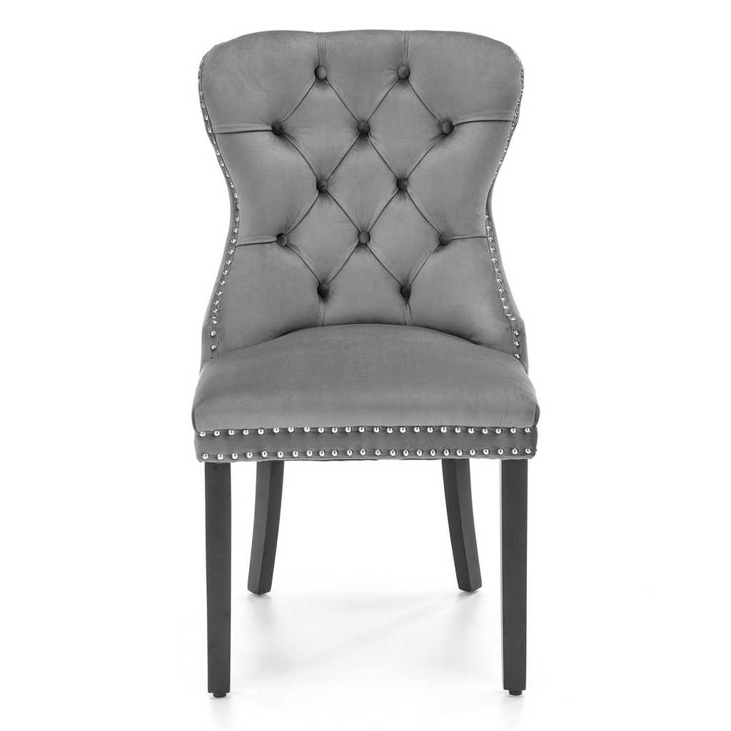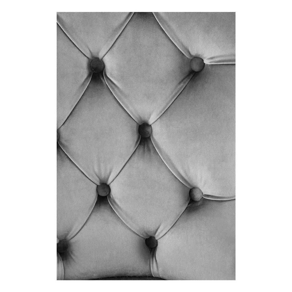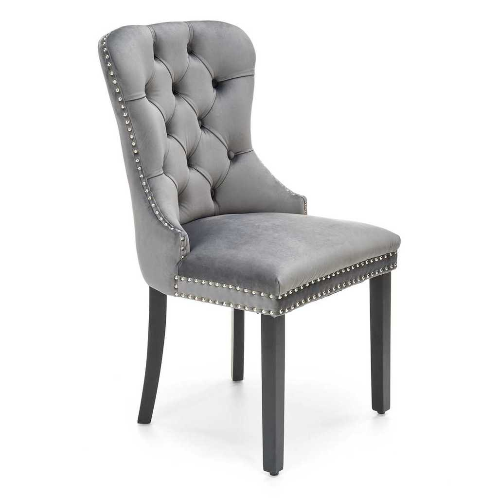Potah je pak ze sametové látky, která židli dodává na prestižnosti. Opěradlo zdobí výrazné prošívání a jeho křivky zvýrazňuje lemování kovovými cvočky.