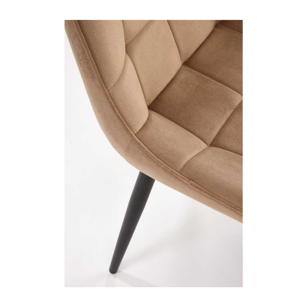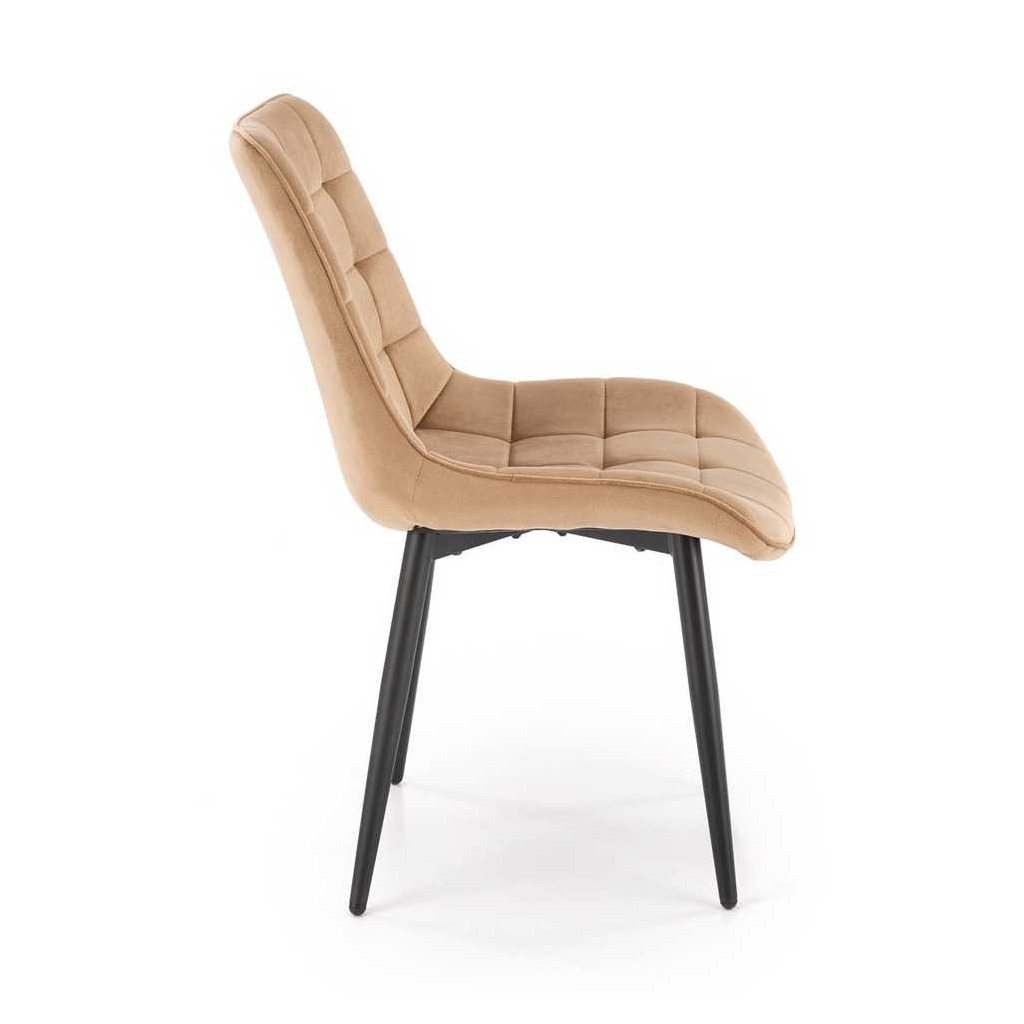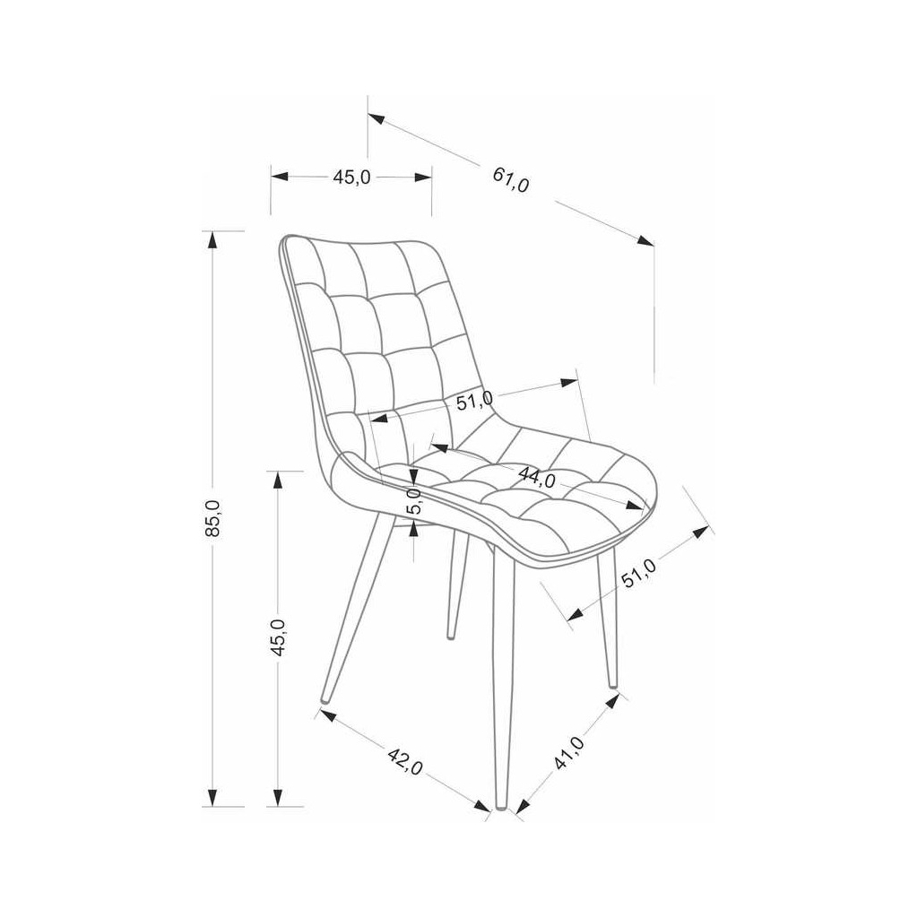 Jídelní židle Daphne kombinuje pohodlí a moderní design, který zpříjemní každé posezení. Sedák a opěrák jsou potažené příjemnou látkou v sametovém provedení, což zajišťuje komfort během delších večeří či setkání s rodinou. Pevná kovová podnož dodává židli stabilitu a robustnost, přičemž celková nosnost dosahuje 100 kg.