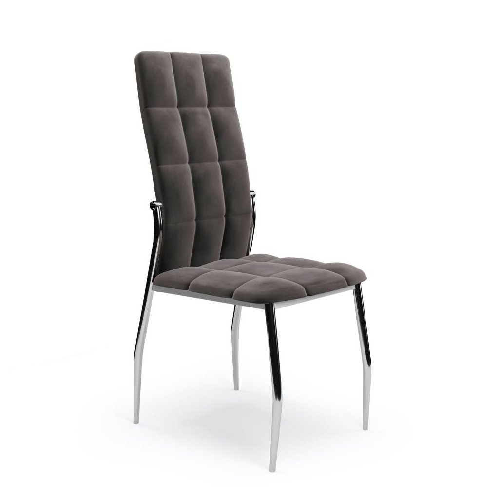 Její luxusní vzhled umocňuje potah ze sametové tkaniny, která je velmi příjemná na omak a na opěráku ještě efektně prošívaná. Polstrovaný sedák poskytne maximální pohodlí. Kovové nohy židli zajistí naprostou stabilitu.