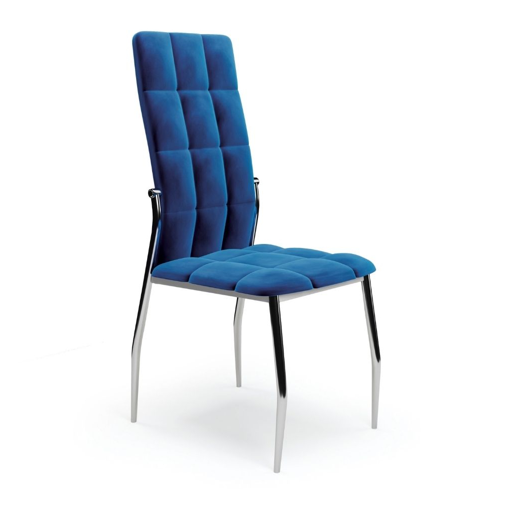 Její luxusní vzhled umocňuje potah ze sametové tkaniny, která je velmi příjemná na omak a na opěráku ještě efektně prošívaná. Polstrovaný sedák poskytne maximální pohodlí. Kovové nohy židli zajistí naprostou stabilitu.