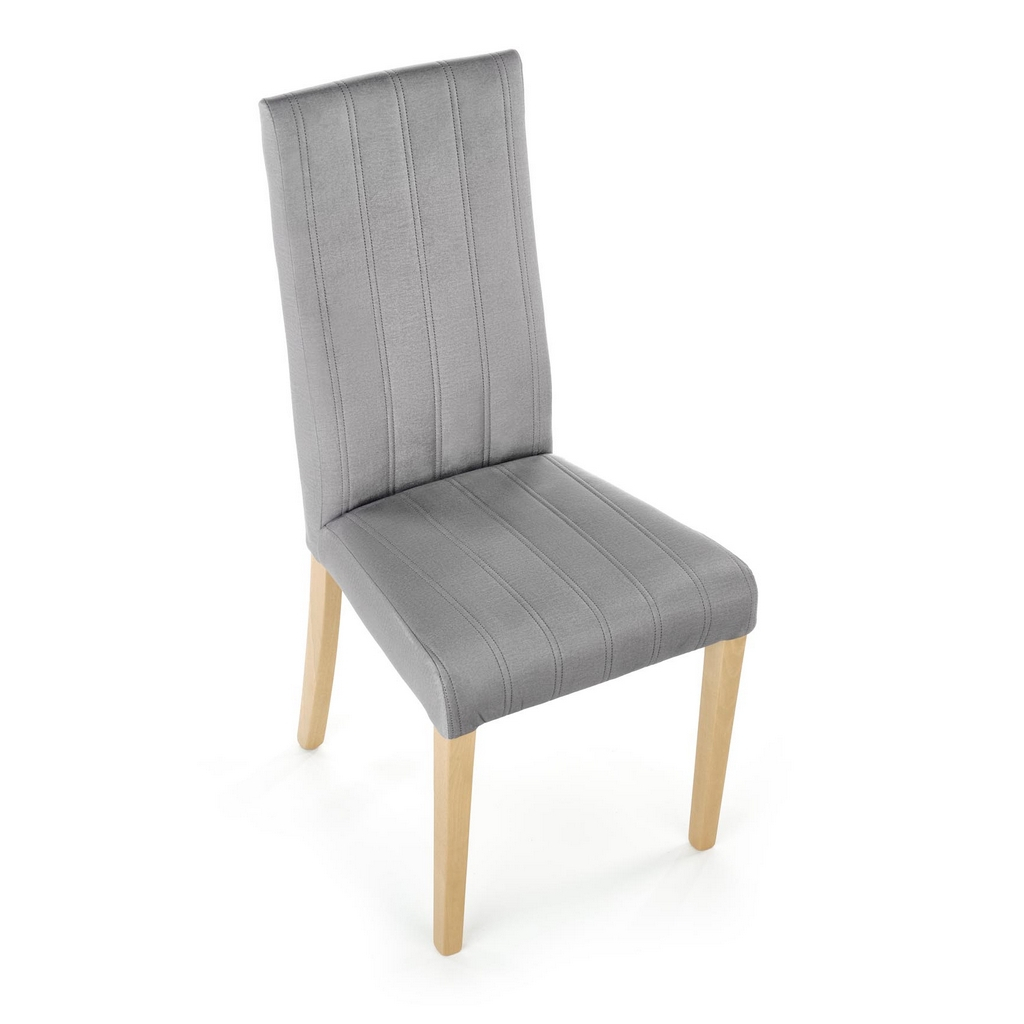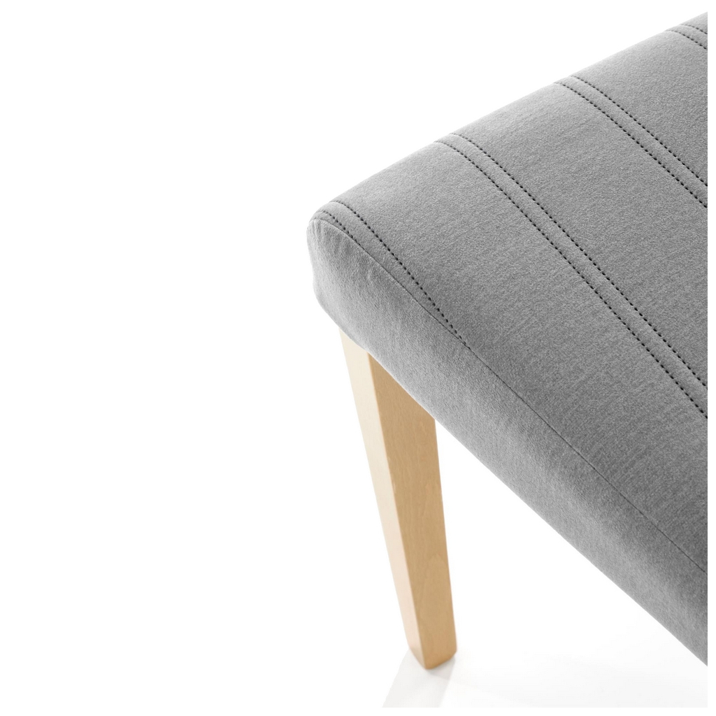 Nohy židle Diego 3 jsou z bukového masivu v přírodní povrchové úpravě. Celá sedací část je pak potažená hebkou látkou, kterou zdobí podélné prošívání.