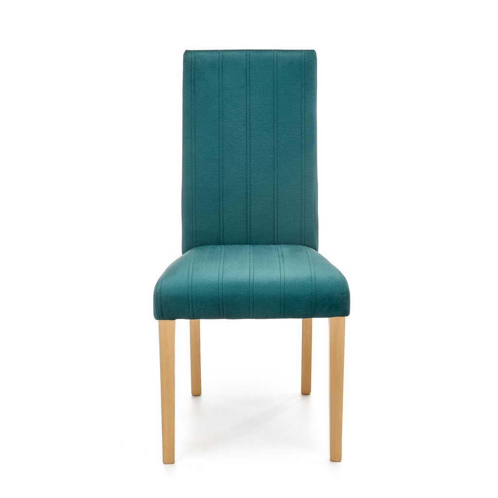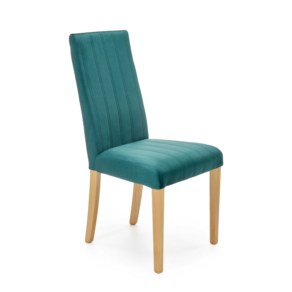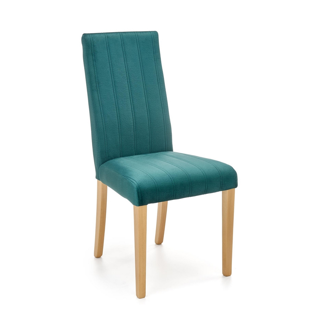 Nohy židle Diego 3 jsou z bukového masivu v přírodní povrchové úpravě. Celá sedací část je pak potažená hebkou látkou, kterou zdobí podélné prošívání.
