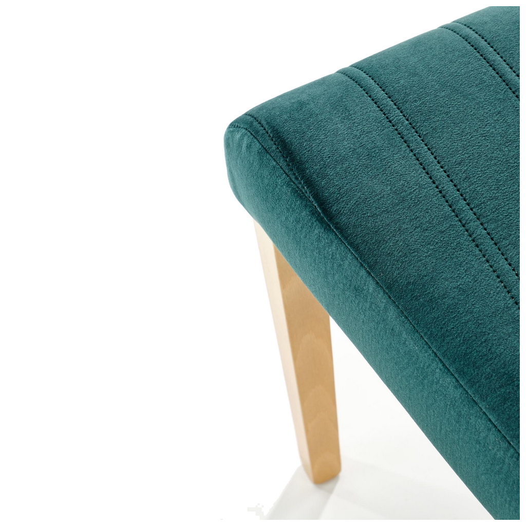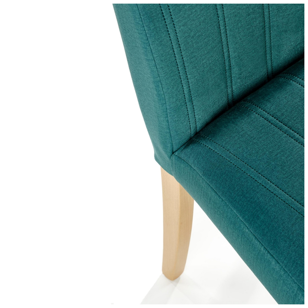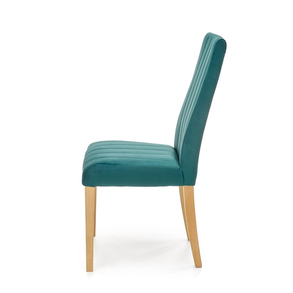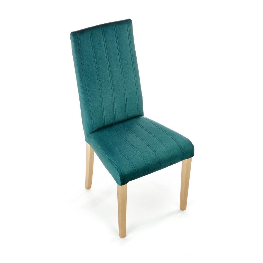 Nohy židle Diego 3 jsou z bukového masivu v přírodní povrchové úpravě. Celá sedací část je pak potažená hebkou látkou, kterou zdobí podélné prošívání.