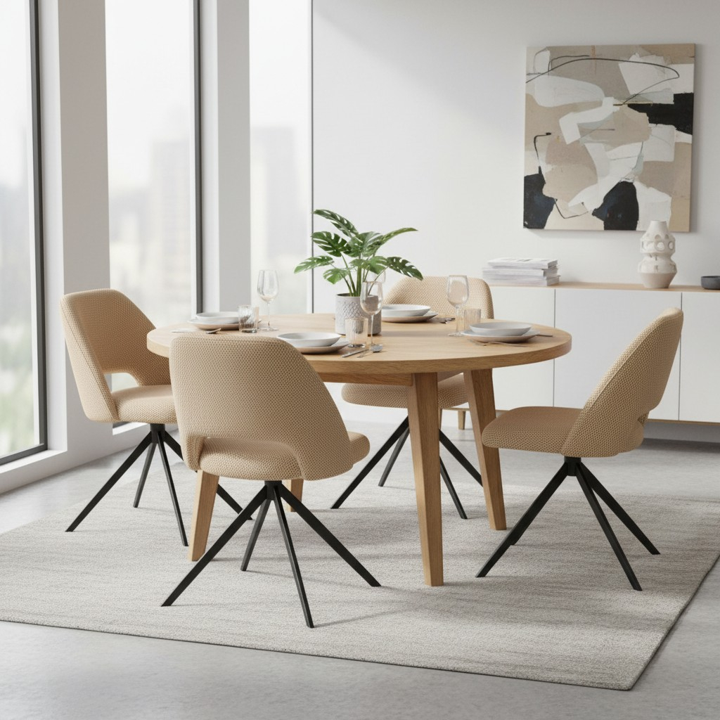 Stabilní podnož je tvořena 4 nohami z práškované ocele. Se sedákem je spojuje otočný mechanismus, který umožňuje otáčení sedadla v rozsahu 180°. To vám dá při stolování svobodu pohybu.