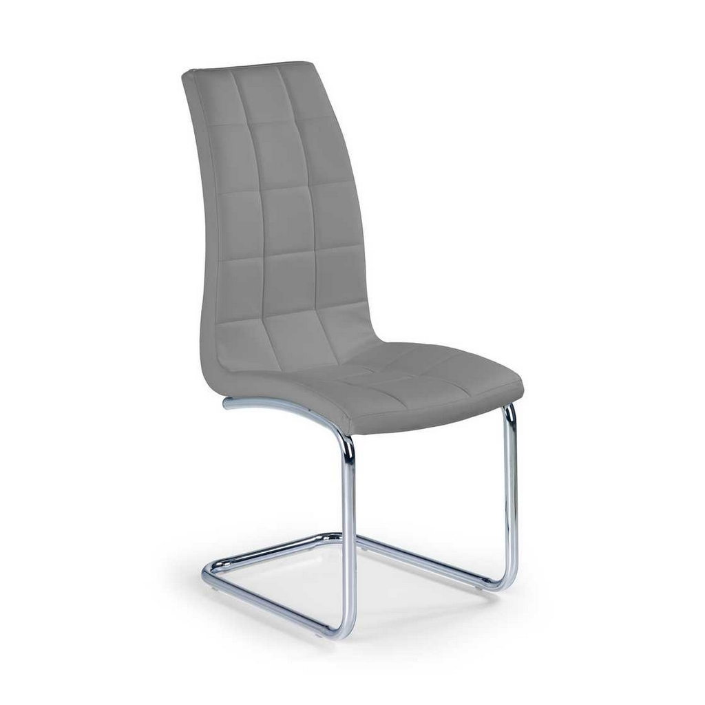 Židle je vybavena stabilní konstrukcí v podobě kovové podstavy v chromované úpravě. Sedák i opěrák jsou čalouněné elegantní eko kůží s nadčasovým prošíváním.