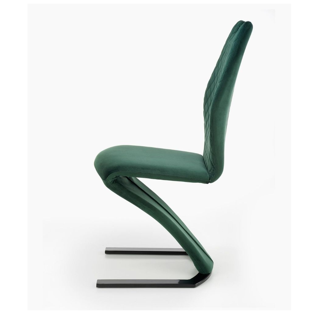 Potah židle je protažen až do spodní části židle, kde pak pochromovaná noha židli zajišťuje potřebnou stabilitu. Díky tomuto specifickému řešení ustavení židle můžete využívat i možnost pružného dosedu a příjemného pohupování.