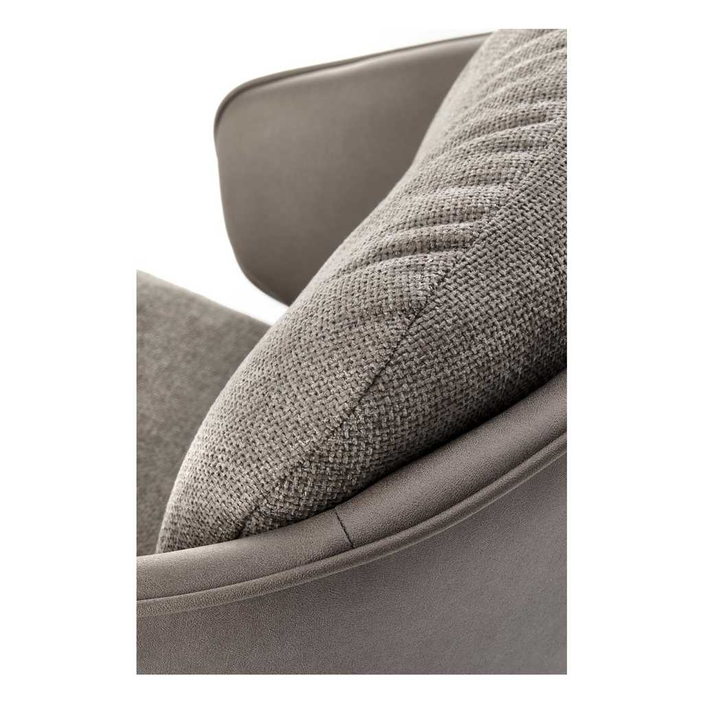 Samotné sedadlo je čalouněné látkou, která je příjemná na dotek a odolná vůči opotřebení. Zadní a spodní část pak objímá dekorativní konstrukce potažená koženkou. Pro snazší manipulaci navíc vzadu najdete praktickou rukojeť.