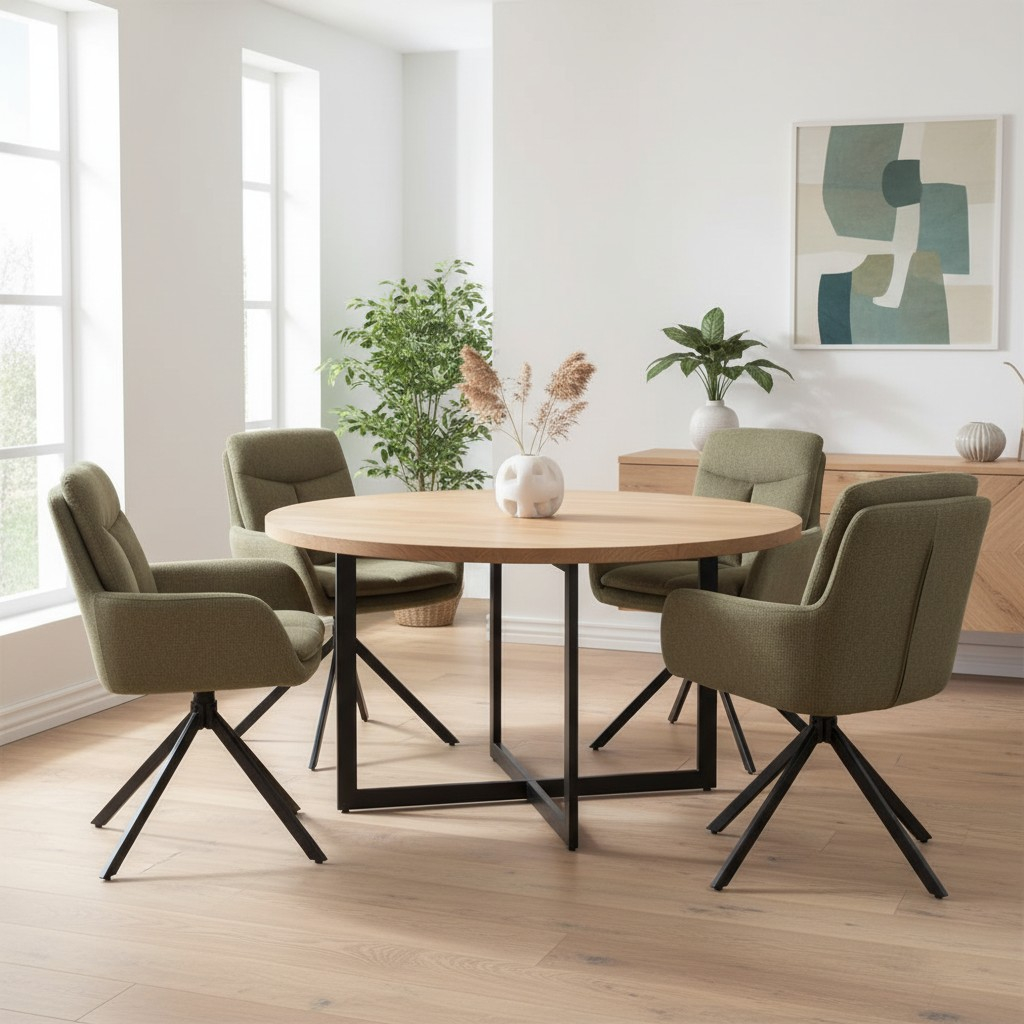 Stabilní podnož je tvořena 4 nohami z práškované ocele. Se sedákem je spojuje otočný mechanismus, který umožňuje volné otáčení sedadla. To vám dá při stolování svobodu pohybu.