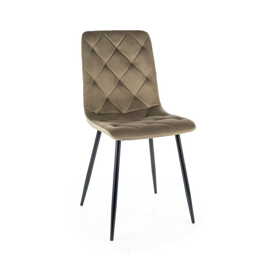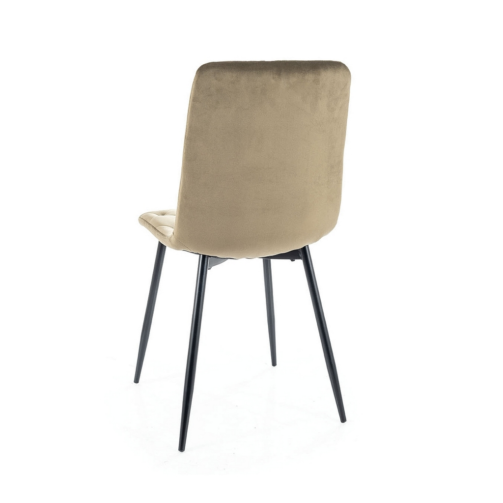 Úzké nohy z kovu dodávají židli stabilitu, zároveň ale působí vzdušně. O efektní vzhled a pohodlí se stará polstrování a čalounění ze sametově hebké látky. Ta zaujme moderním prošíváním.