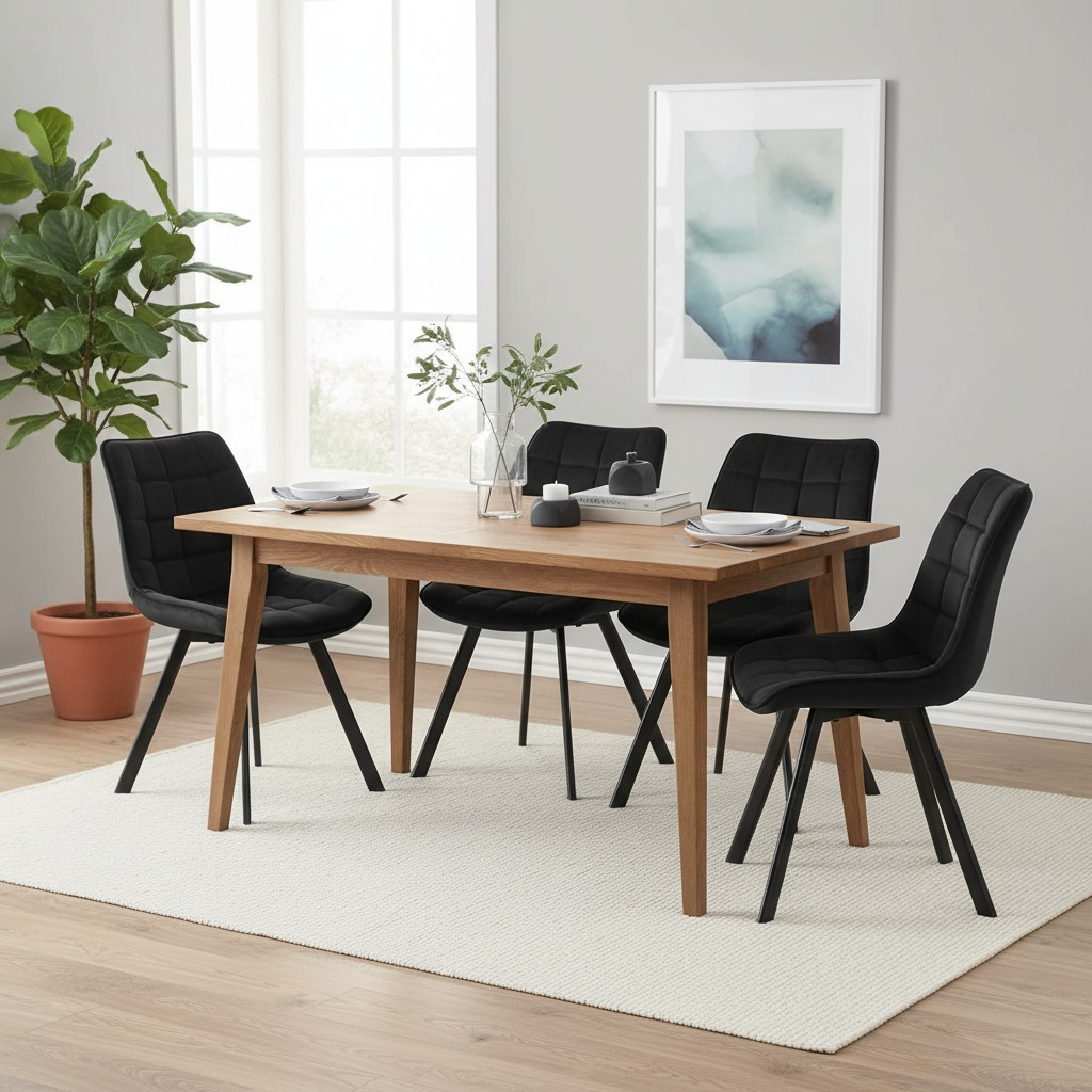 Hebký prošívaný potah ze sametové látky, pohodlí a moderní design – to je poznávací znamení jídelní židle Jordan, která vytvoří pohodlné posezení v domácnosti v rodinném kruhu, ale také klientům v restauračním zařízení.