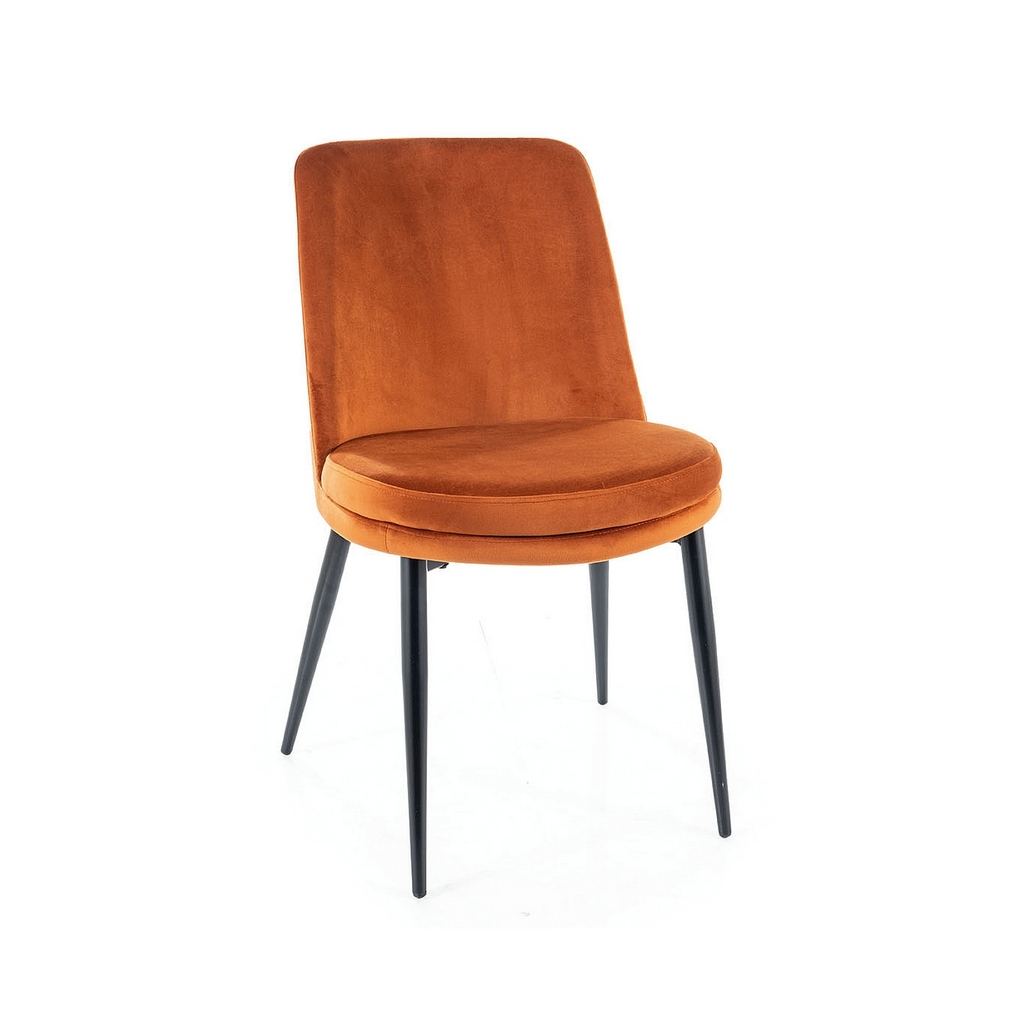 Potah ze sametově hebké látky zaručuje příjemné posezení během jídla či společenských setkání. Opěrák svým zakřivením obejme vaše boky a vytvoří pocit bezpečí.