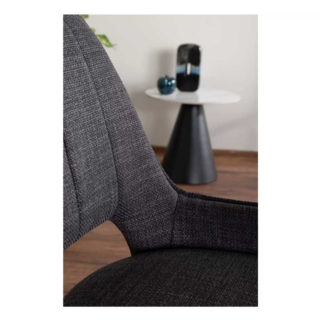 Moderní židle je potažená hrubší, ale příjemnou látkou, která zajišťuje dlouhou životnost a pohodlí i při delším posezení. Efektní podívanou připravuje prošívání. Područky se postarají o komfort vašich paží. Pro odvětrávání a suchá záda poslouží otvor na spodním konci opěráku.