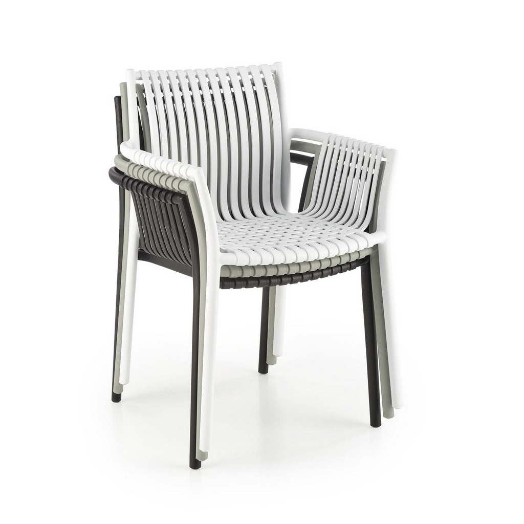 Celá konstrukce židle je totiž z polypropylenu – pevného plastu, který odolá běžným povětrnostním vlivům.