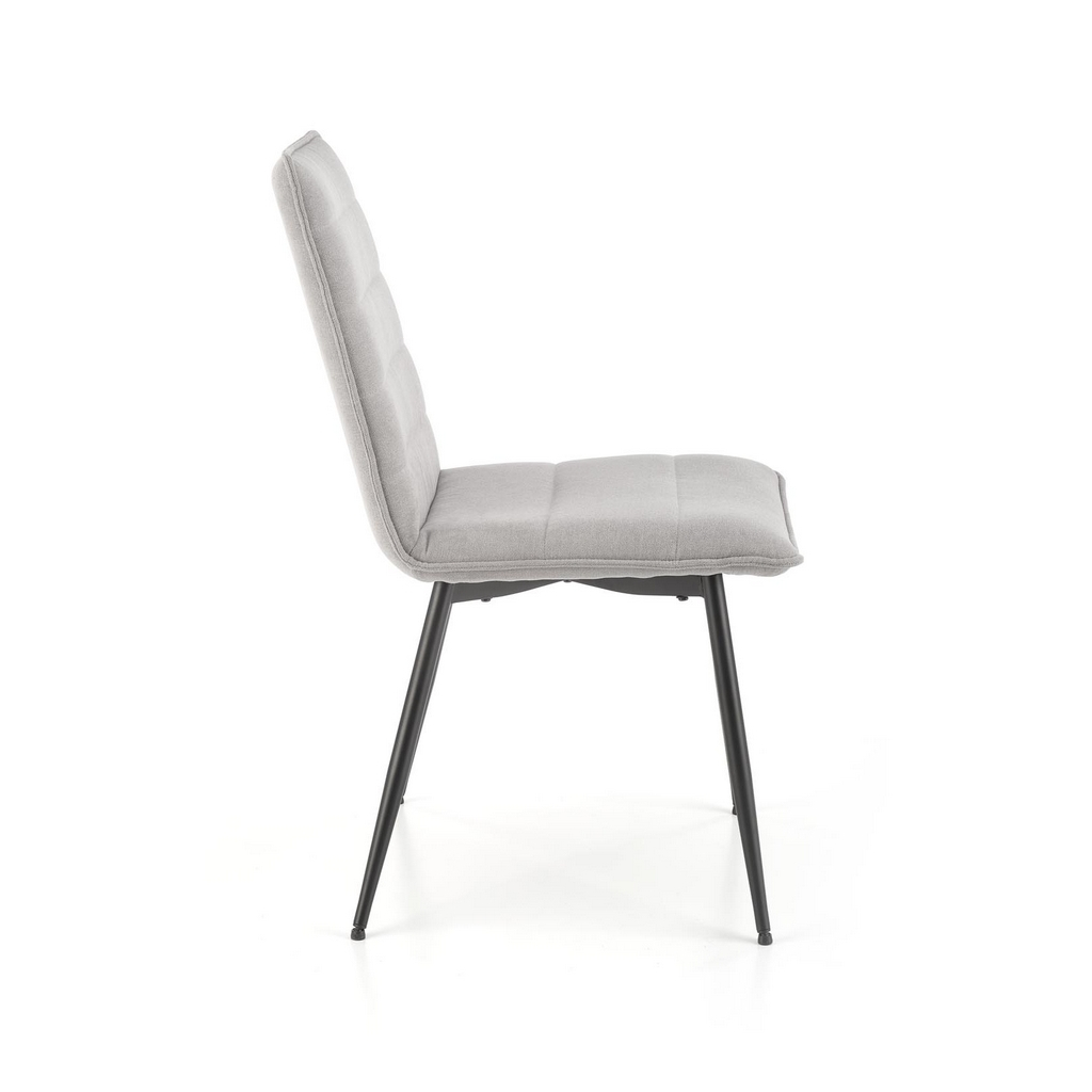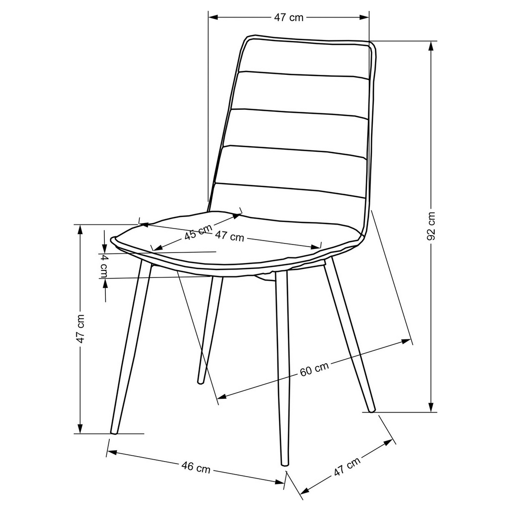 Židle se skládá z čalouněného sedáku s opěradlem. Obojí je potažené látkou. Stabilní základnu pak tvoří 4 ocelové nohy v černé práškované úpravě.