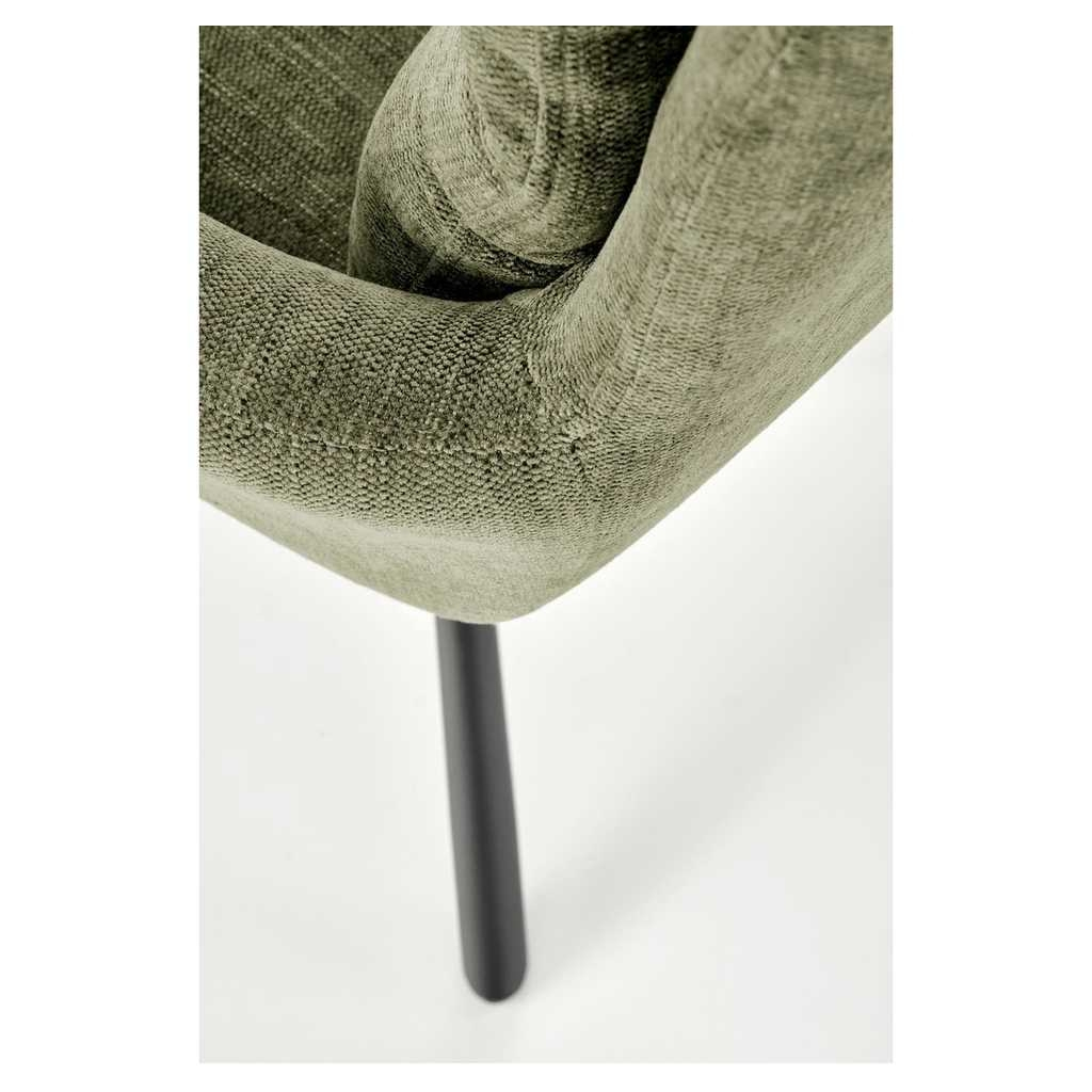 Jídelní židle Leary celkovým pojetím svého sedadla připomíná křeslo, má totiž měkoučké čalounění a područky. To vše je potažené příjemnou látkou.