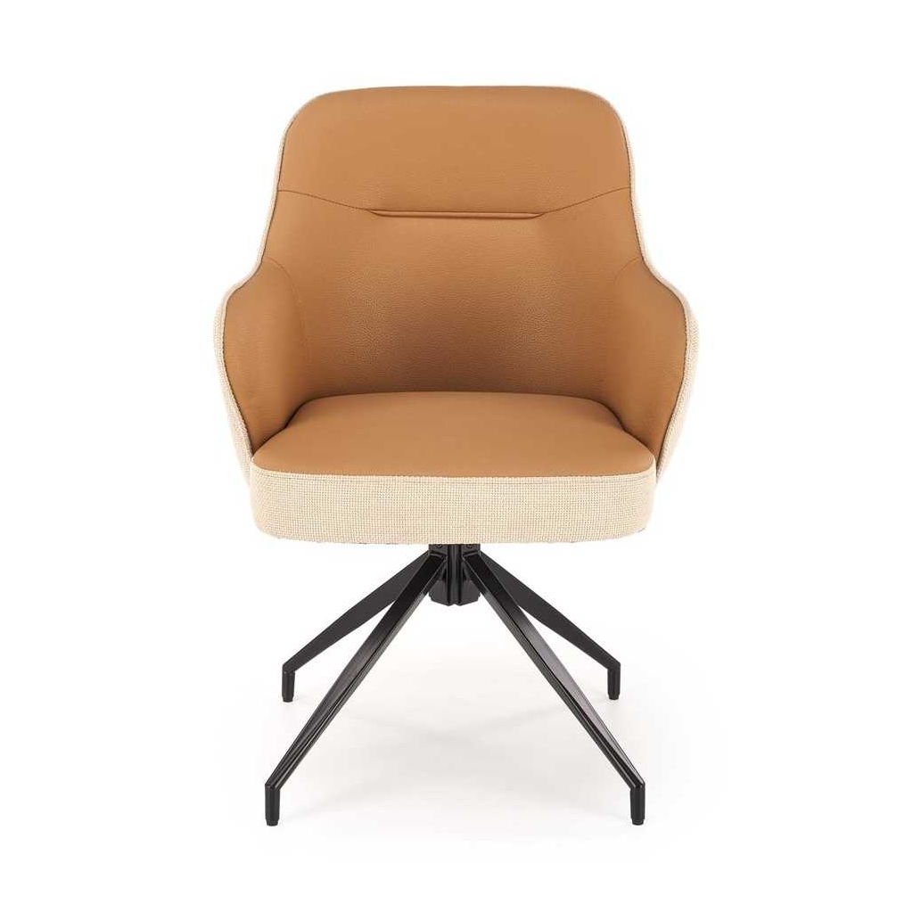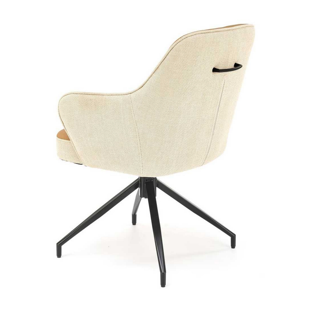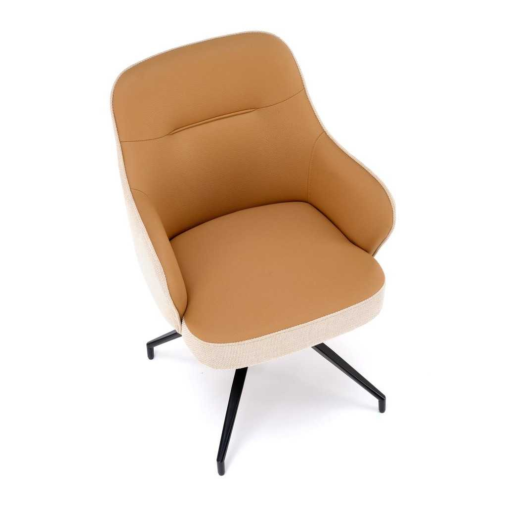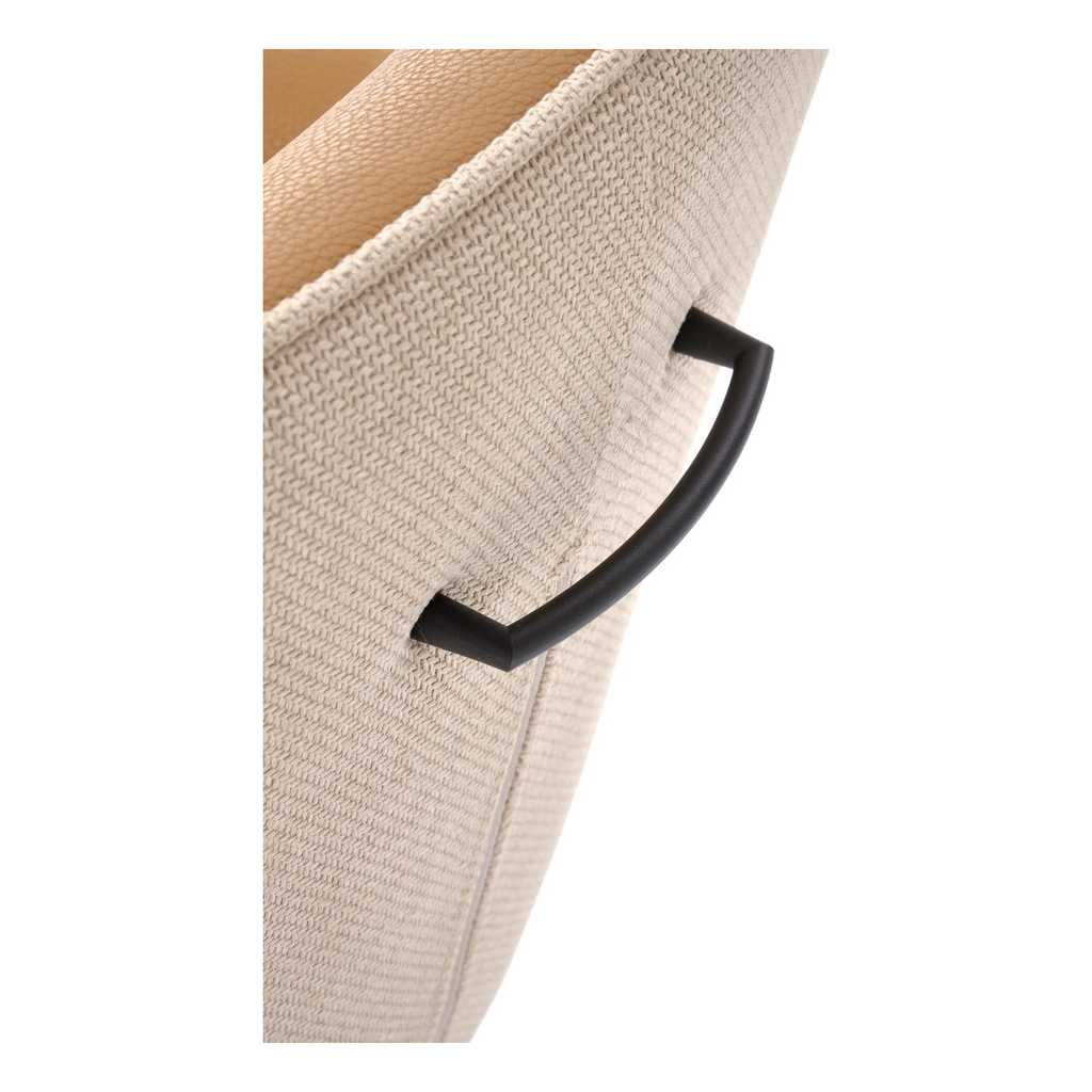 Potah židle je rozdělen podle částí – kontaktní plocha, tedy sedák a opěradlo, je potažená eko kůží, která je příjemná na dotek a snadno se udržuje. Zadní část židle je potažena tkaninou, což přidává na stylovosti a vizuálním kontrastu. Na zadní straně je navíc praktické madlo, které usnadňuje manipulaci se židlí.