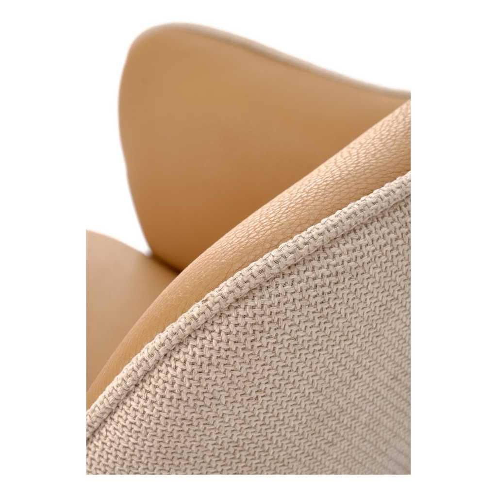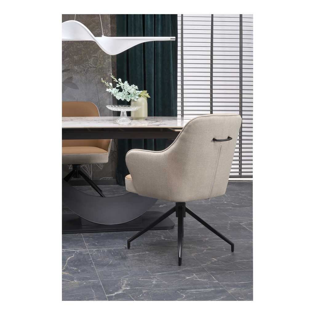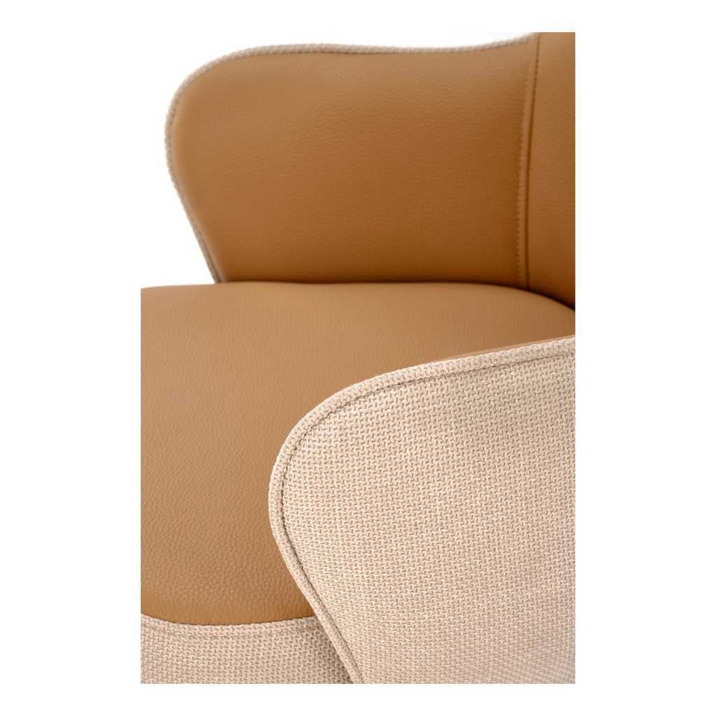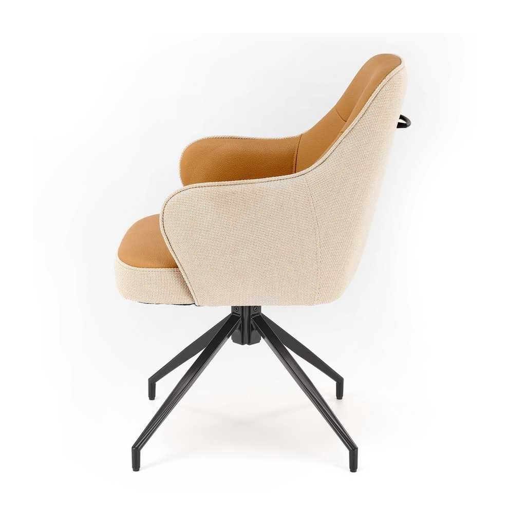 Potah židle je rozdělen podle částí – kontaktní plocha, tedy sedák a opěradlo, je potažená eko kůží, která je příjemná na dotek a snadno se udržuje. Zadní část židle je potažena tkaninou, což přidává na stylovosti a vizuálním kontrastu. Na zadní straně je navíc praktické madlo, které usnadňuje manipulaci se židlí.