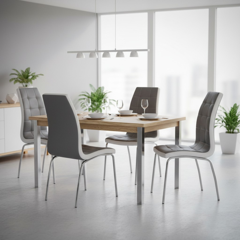 Židle je vybavena stabilní konstrukcí v podobě kovových nohou, které jsou vyrobeny ve chromové barvě. Sedák i opěrák jsou čalouněny příjemnou eko kůží a zajistí vám vždy pohodlné sezení.