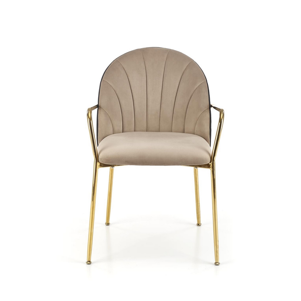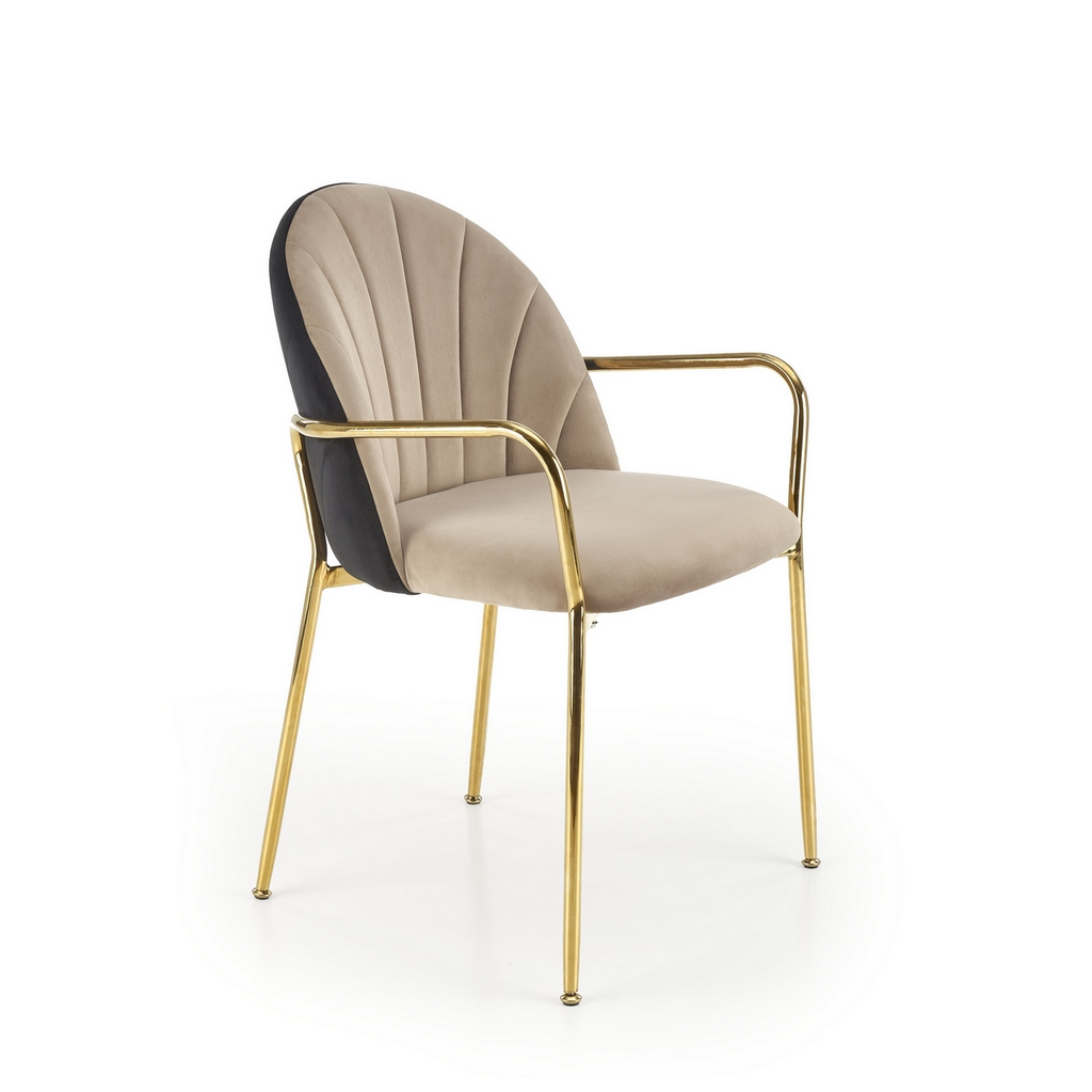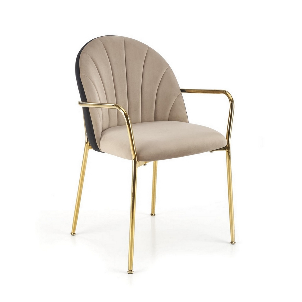 Ta je z nerezivějící ocele ve zlatém lesku. Nohy volně přecházejí v područky, které uvolní napětí ve vašich pažích. Židle unese až 100 kg.