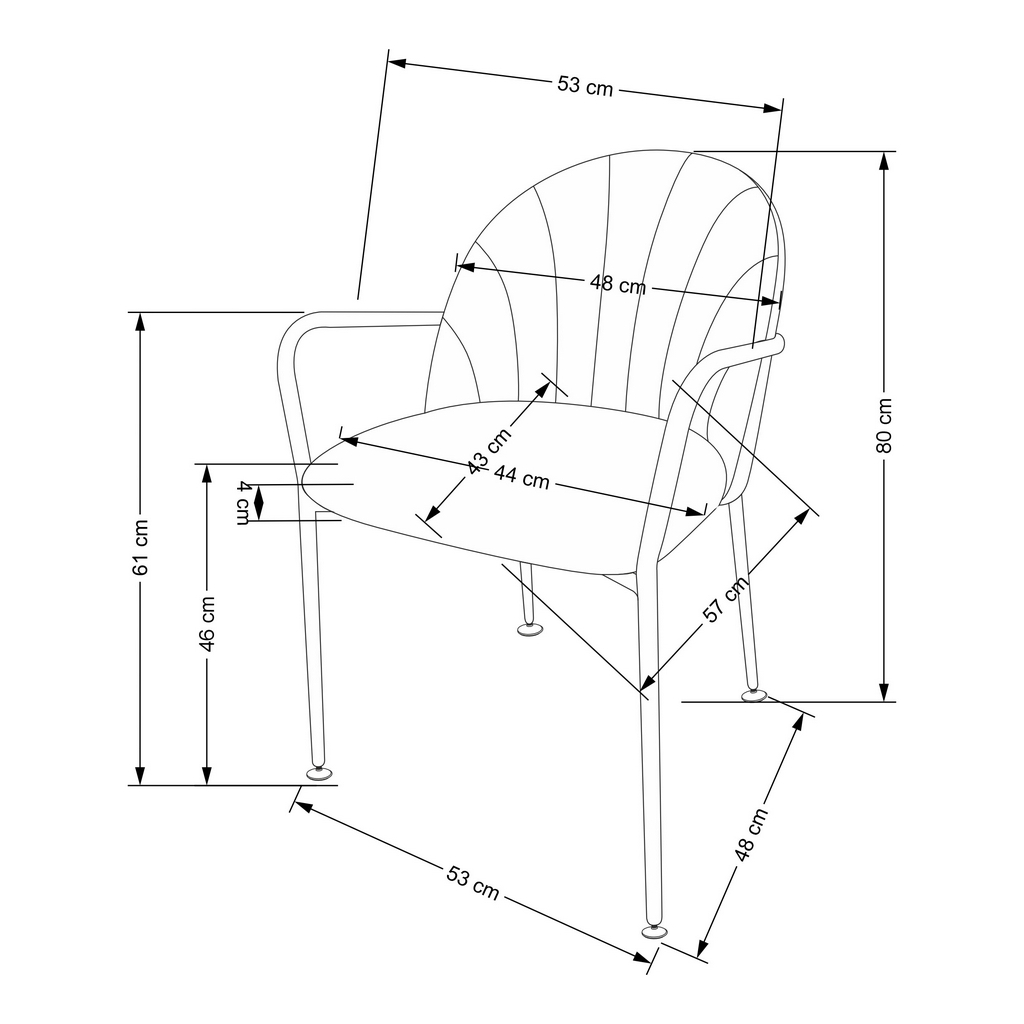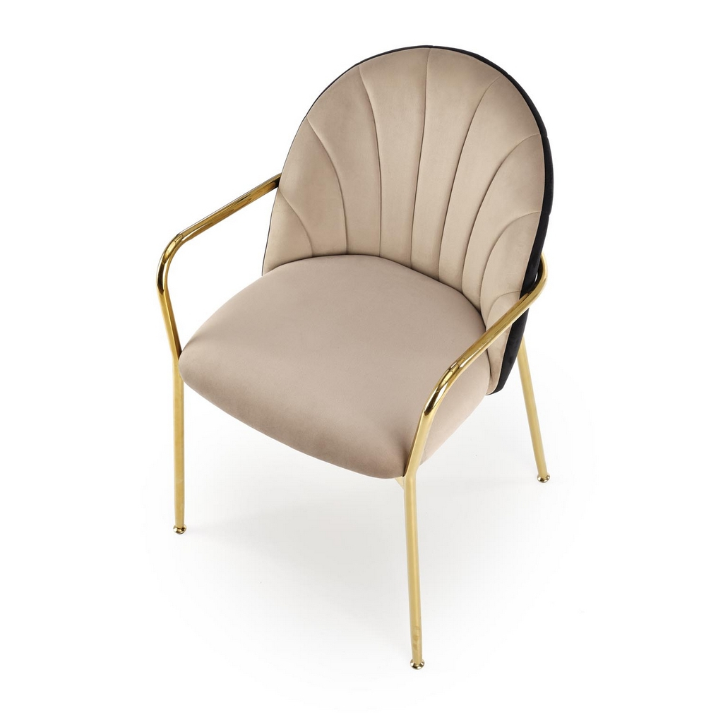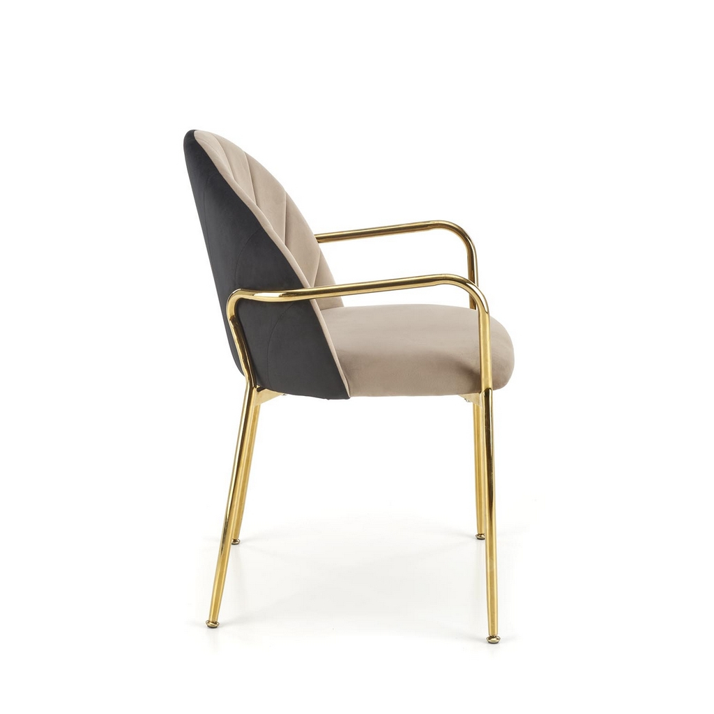 Ta je z nerezivějící ocele ve zlatém lesku. Nohy volně přecházejí v područky, které uvolní napětí ve vašich pažích. Židle unese až 100 kg.