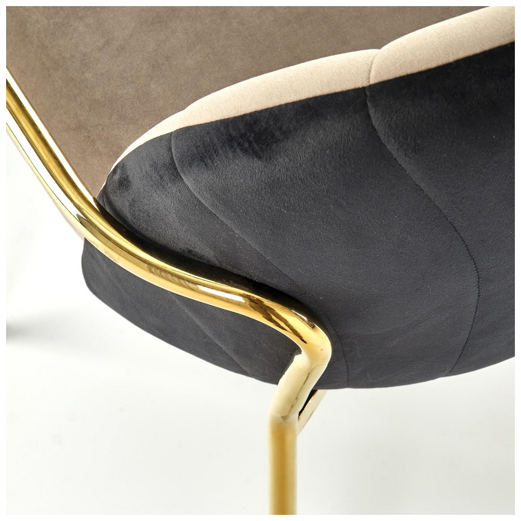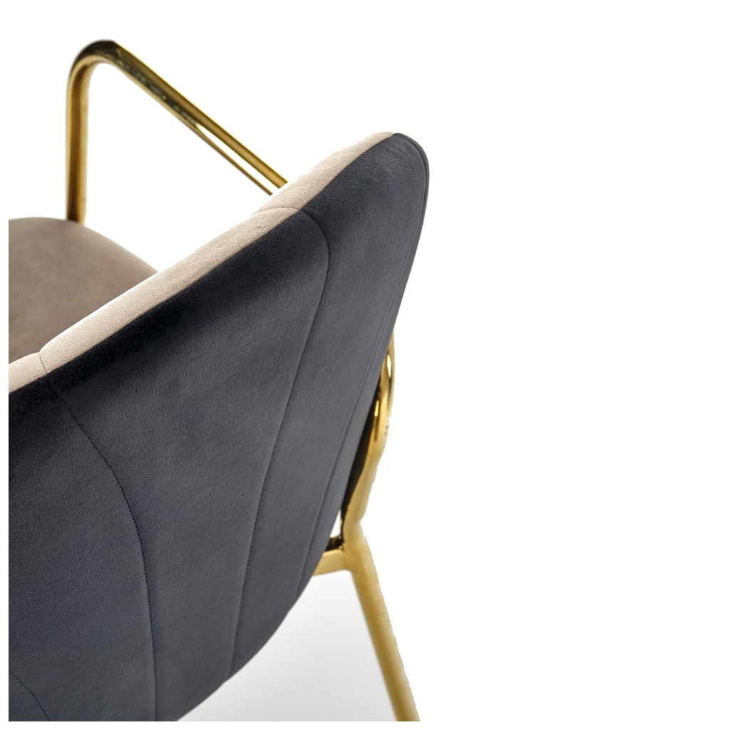 Sedák i opěradlo jsou čalouněné hebkou látkou podobnou sametu. Zadní strana opěráku má černou barvu, která vytváří zajímavý kontrast jak se zbytkem potahu, tak s kostrou židle.