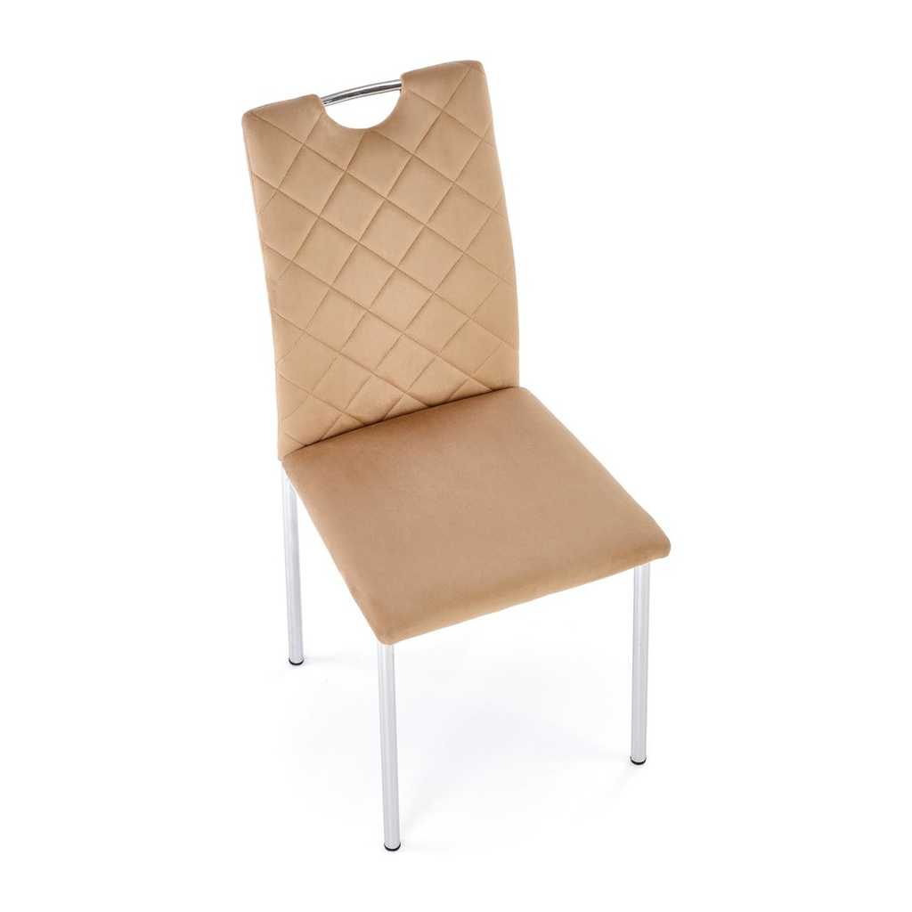 Jídelní židle Liurnia nabízí pohodlí a styl v moderním designu, který se hodí do každé jídelny. Potah z látky sametu zaručuje příjemný a měkký povrch pro dlouhodobé sezení. Konstrukce se stabilní kovovou podnoží zajišťuje pevnost a odolnost židle, přičemž maximální nosnost činí 120 kg.