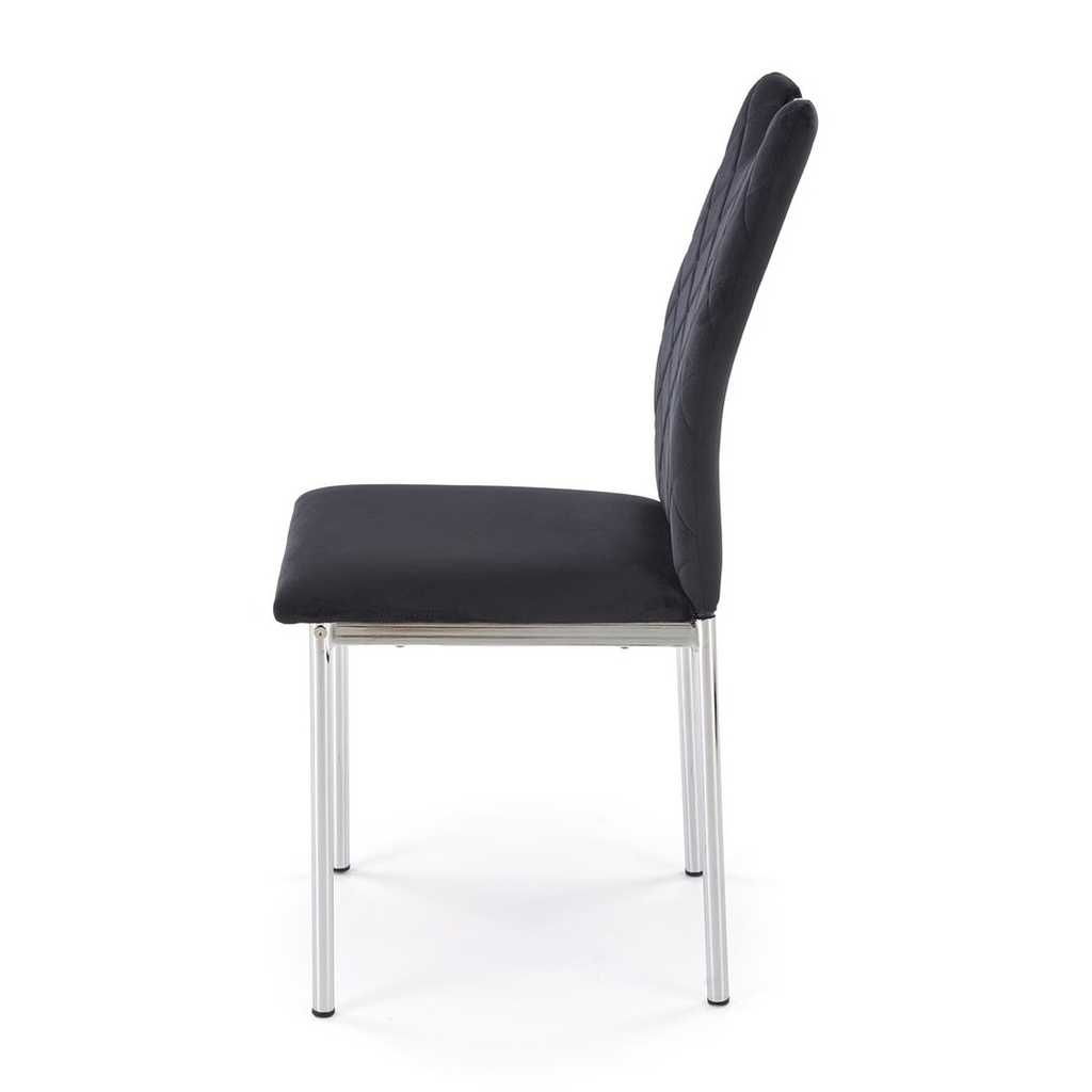 Jídelní židle Liurnia nabízí pohodlí a styl v moderním designu, který se hodí do každé jídelny. Potah z látky sametu zaručuje příjemný a měkký povrch pro dlouhodobé sezení. Konstrukce se stabilní kovovou podnoží zajišťuje pevnost a odolnost židle, přičemž maximální nosnost činí 120 kg.