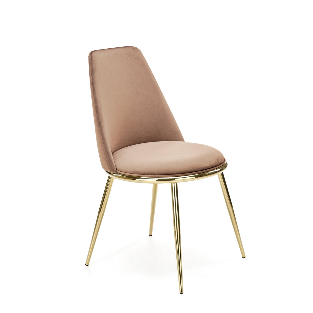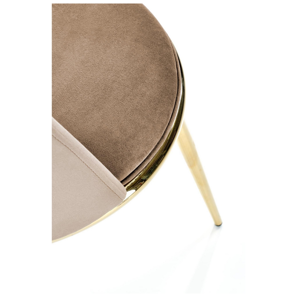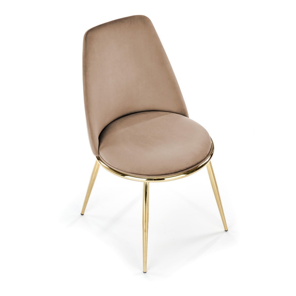 Sedadlo je potažené sametovou látkou, takže sezení bude skutečný zážitek. Nohy jsou zase z chromované ocele ve zlaté barvě. Židli zajistí potřebnou stabilitu a nosnost 100 kg.