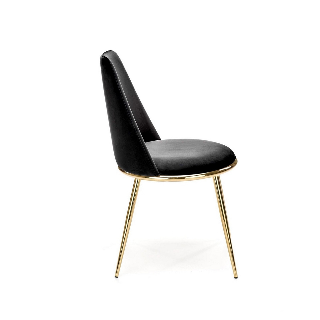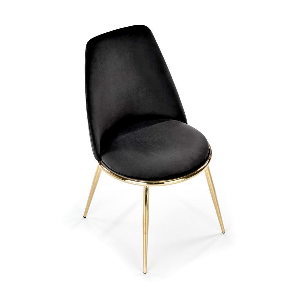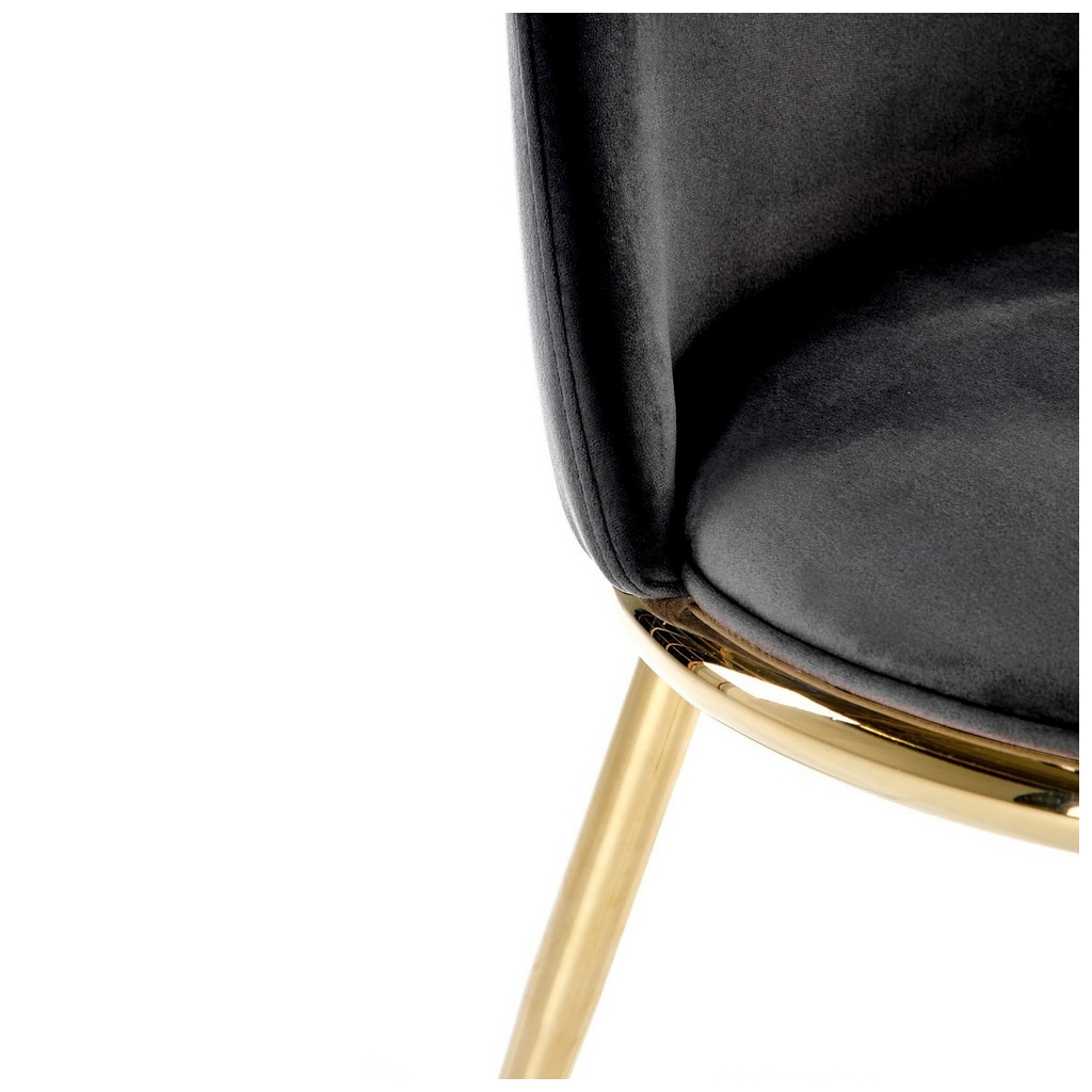 Sedadlo je potažené sametovou látkou, takže sezení bude skutečný zážitek. Nohy jsou zase z chromované ocele ve zlaté barvě. Židli zajistí potřebnou stabilitu a nosnost 100 kg.