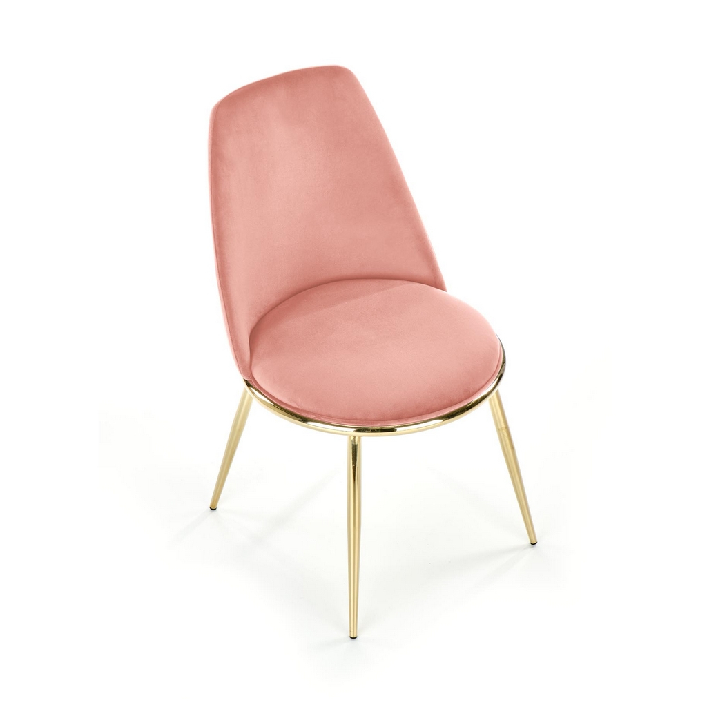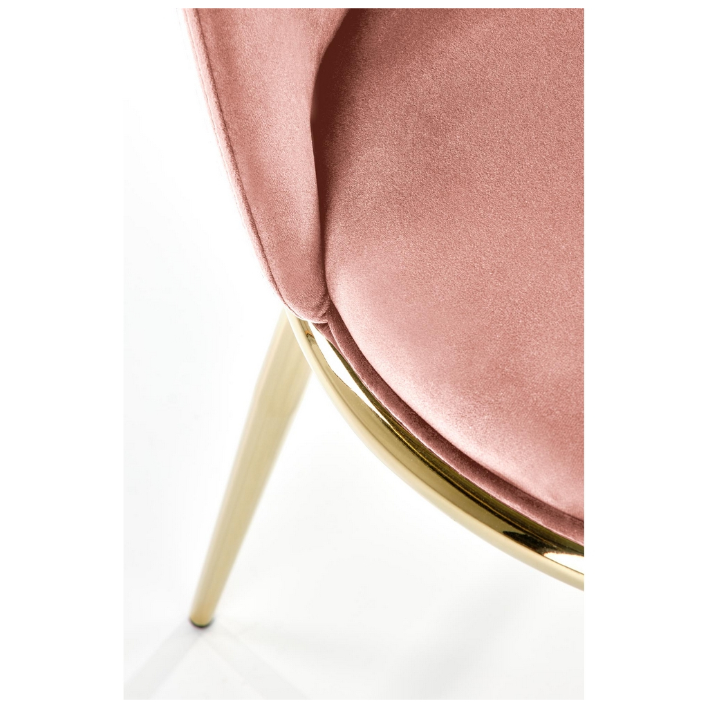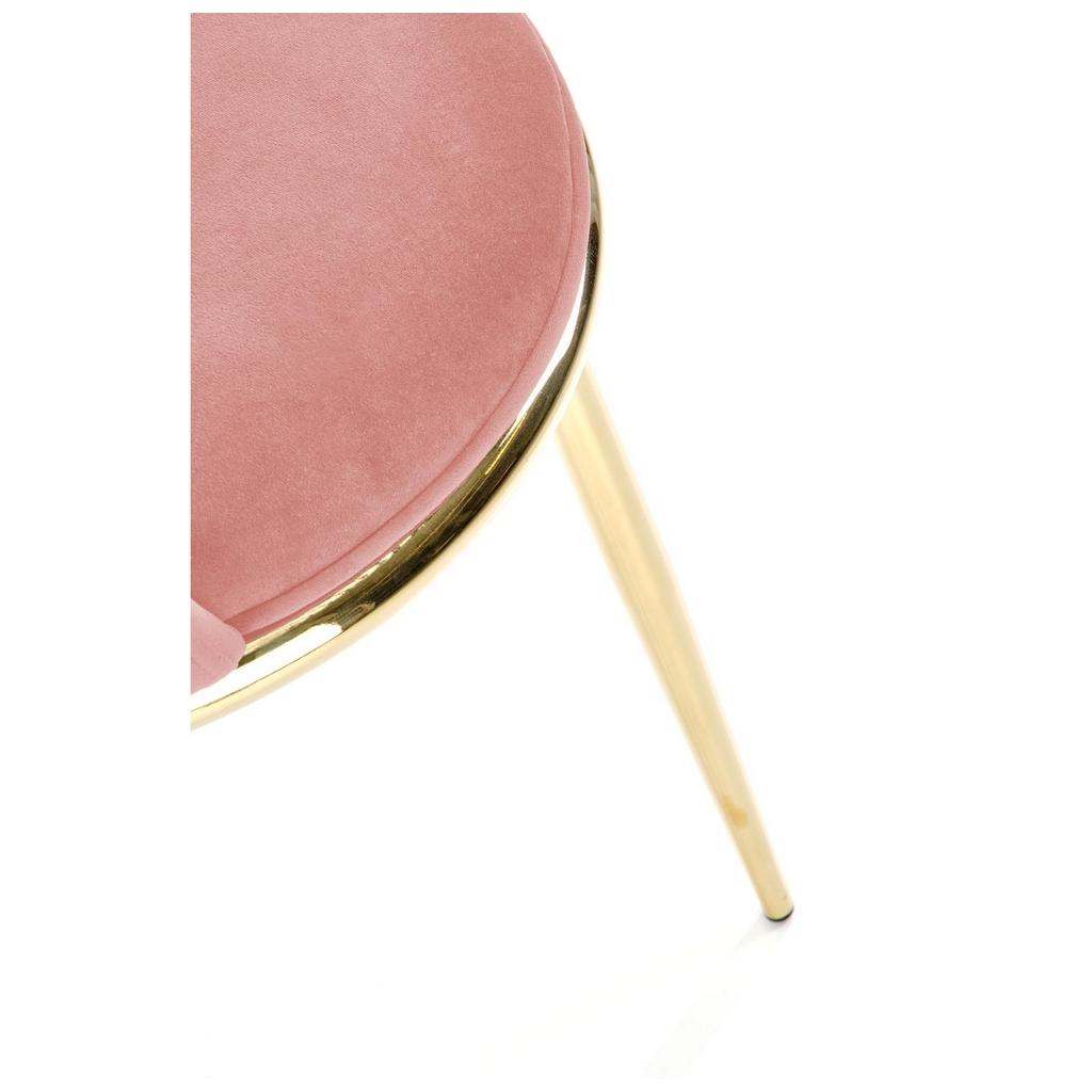 Sedadlo je potažené sametovou látkou, takže sezení bude skutečný zážitek. Nohy jsou zase z chromované ocele ve zlaté barvě. Židli zajistí potřebnou stabilitu a nosnost 100 kg.