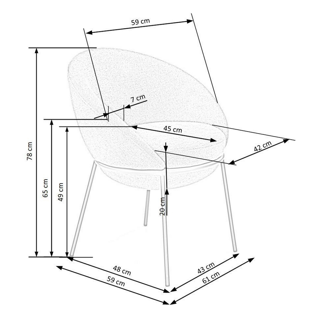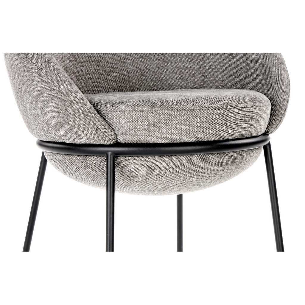 Sedák i opěradlo jsou bohatě polstrované a potažené látkou. Ocelová podnož má podobu obruče se 4 nohami a chlubí se nosností 100 kg.