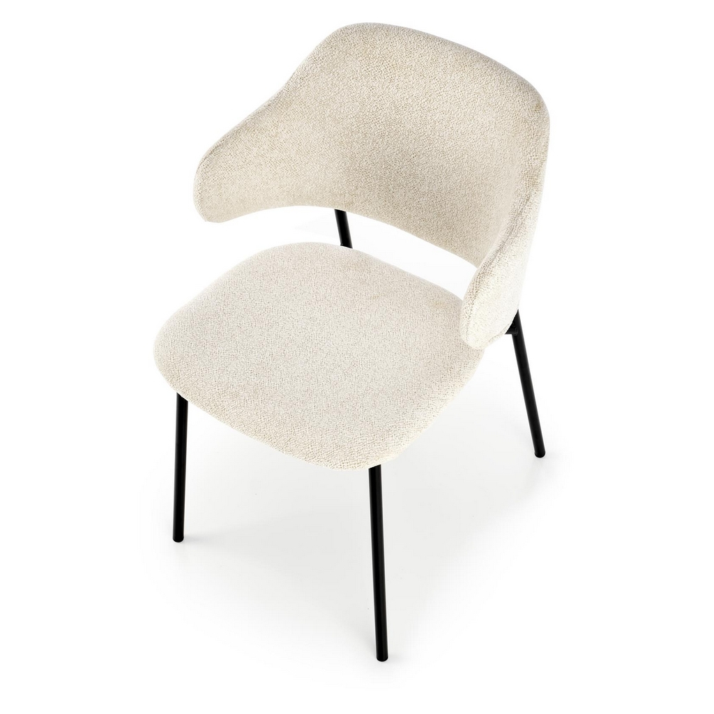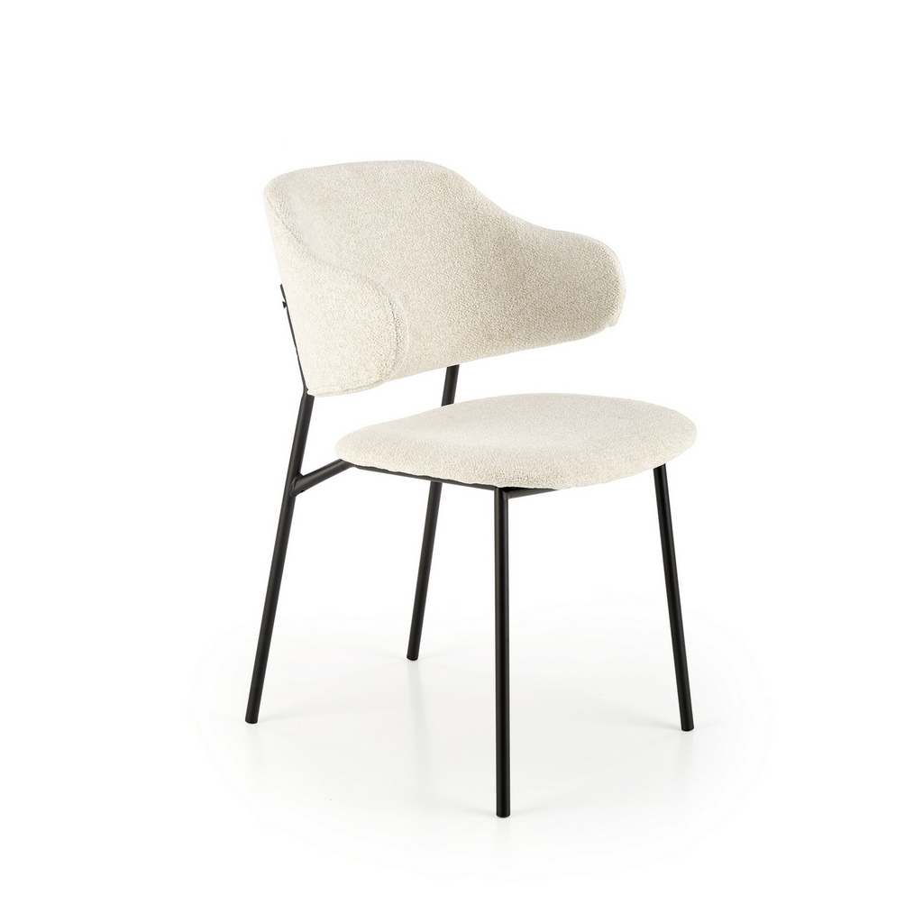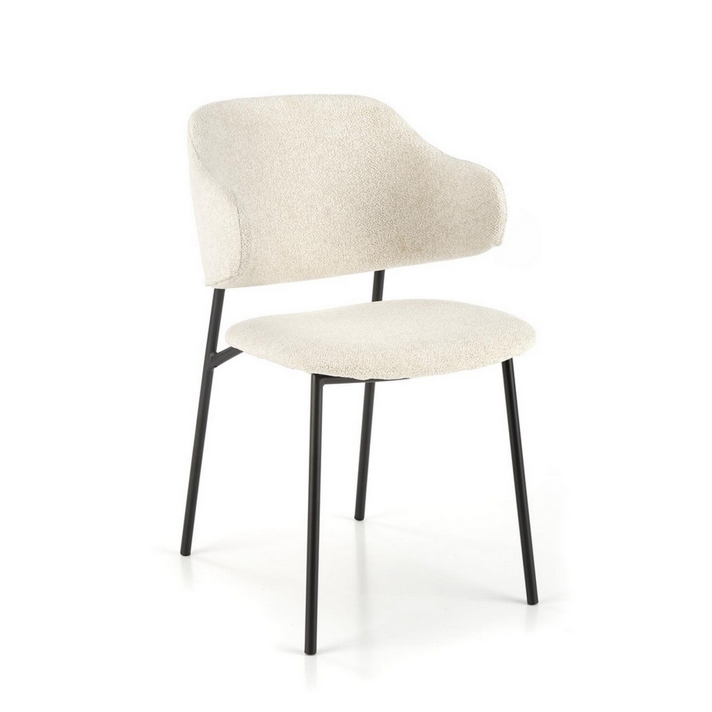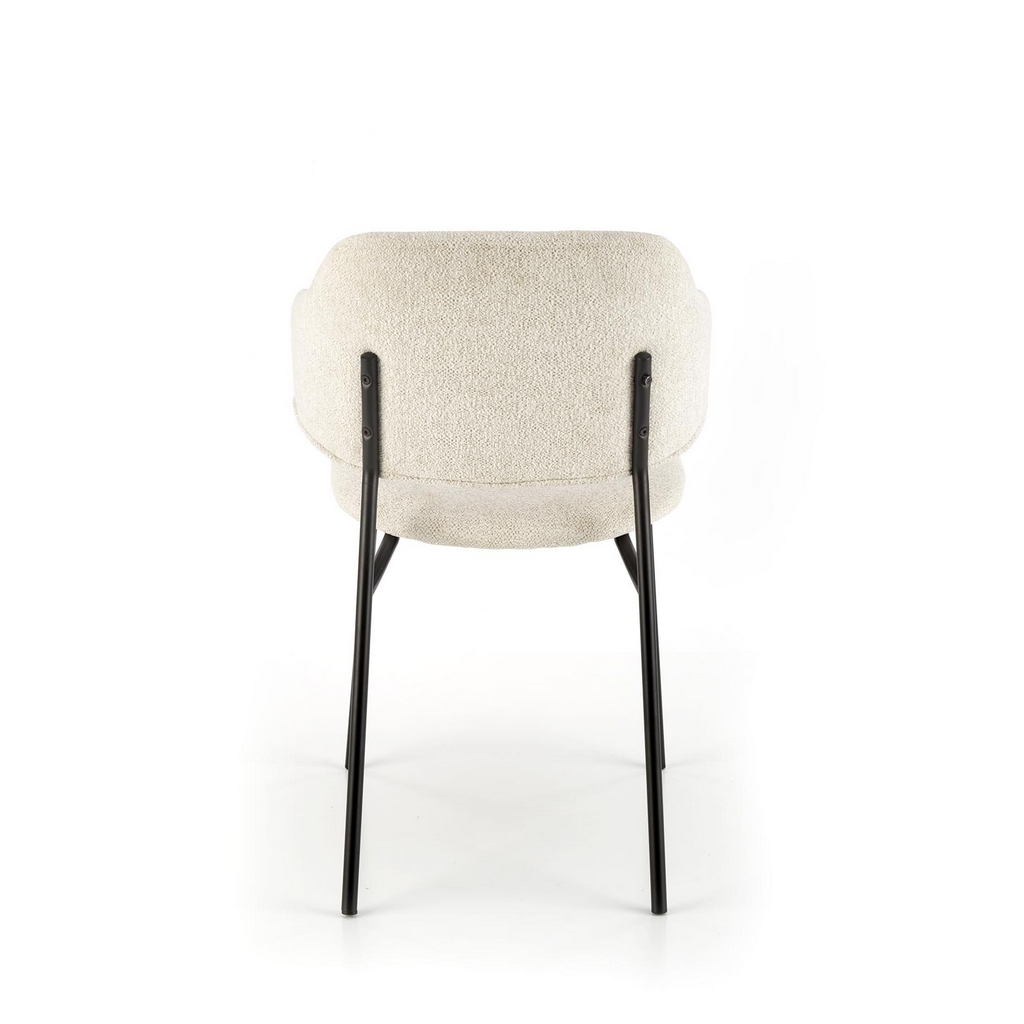 Sedák je čalouněný příjemnou látkou. Totéž platí i u opěradla, jehož elegantně zakřivené boky jsou hlavním poznávacím znamením této židle.