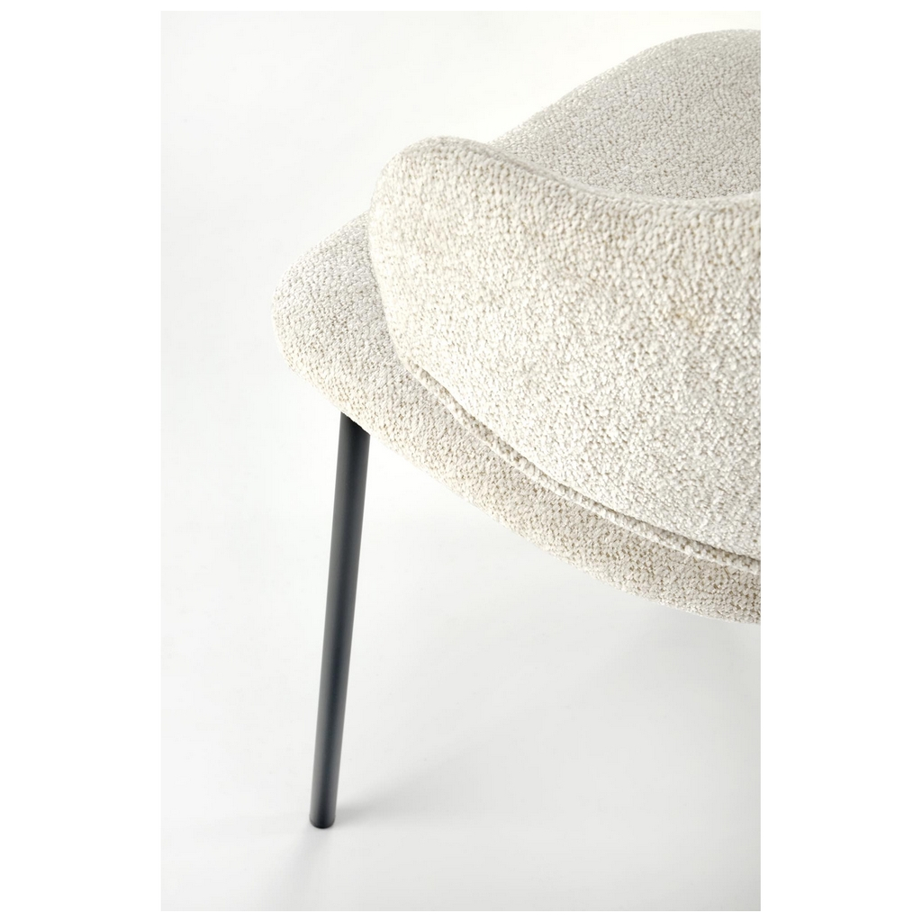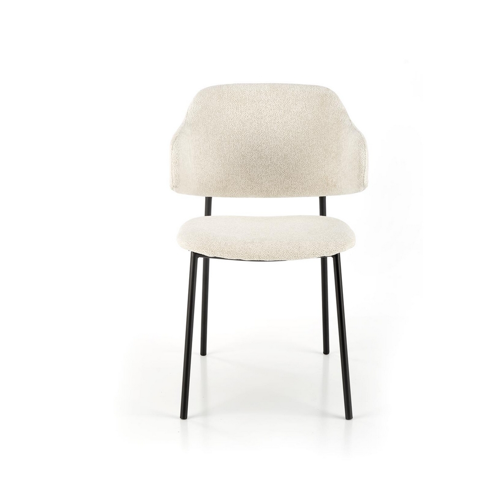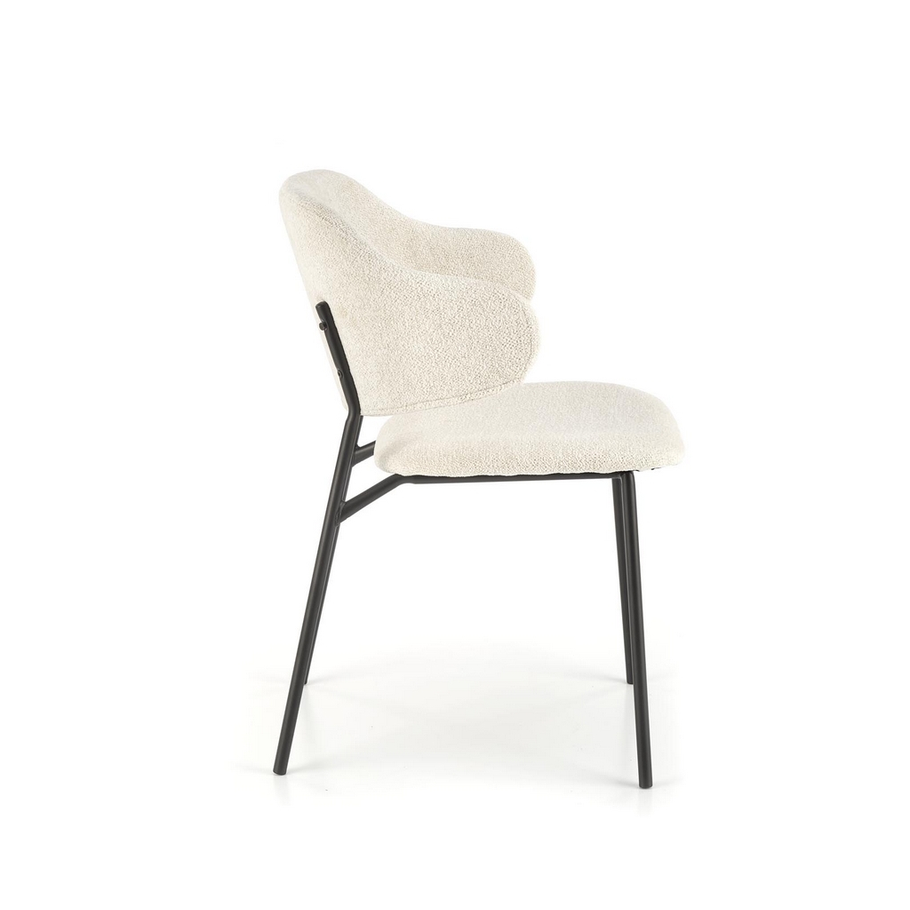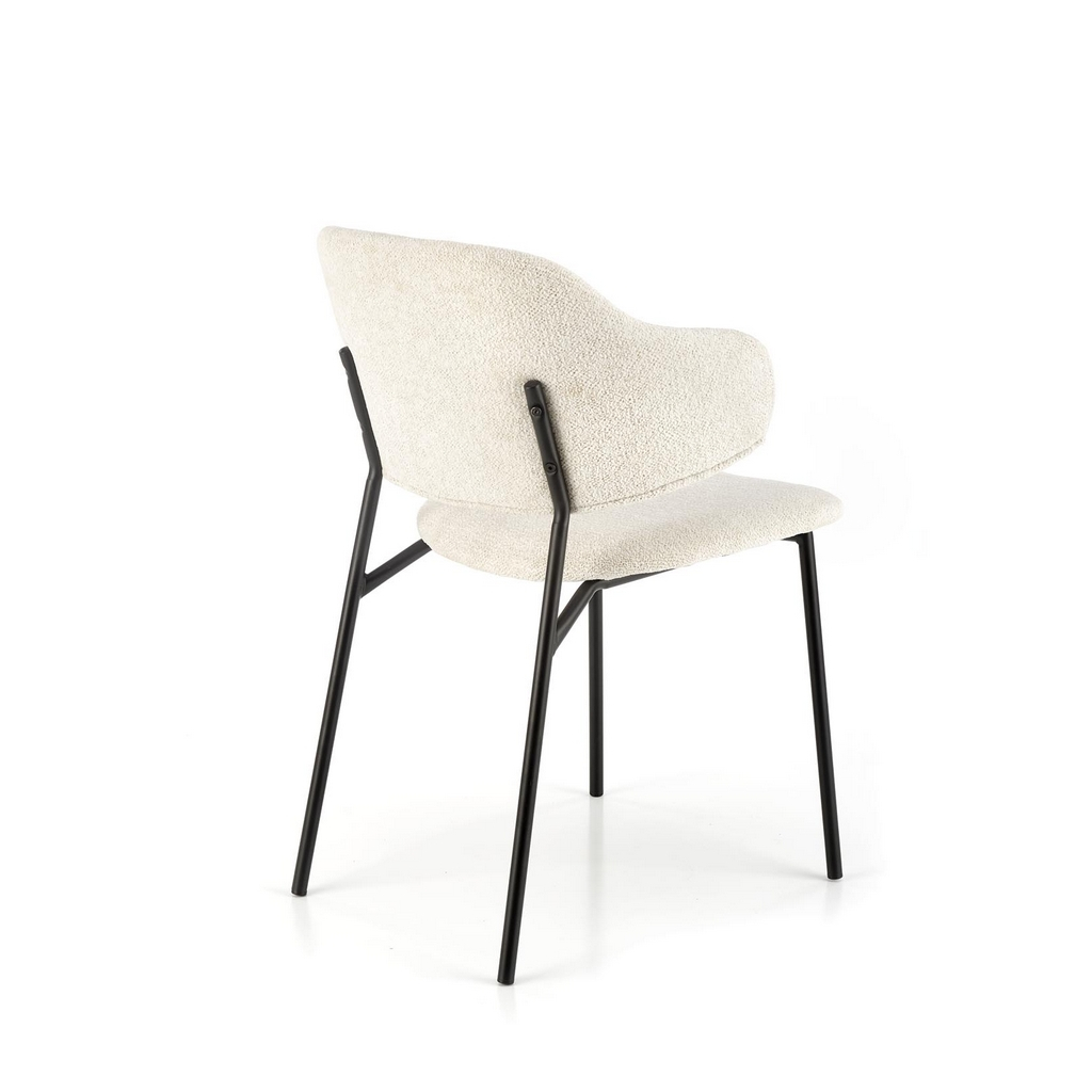 Sedák je čalouněný příjemnou látkou. Totéž platí i u opěradla, jehož elegantně zakřivené boky jsou hlavním poznávacím znamením této židle.