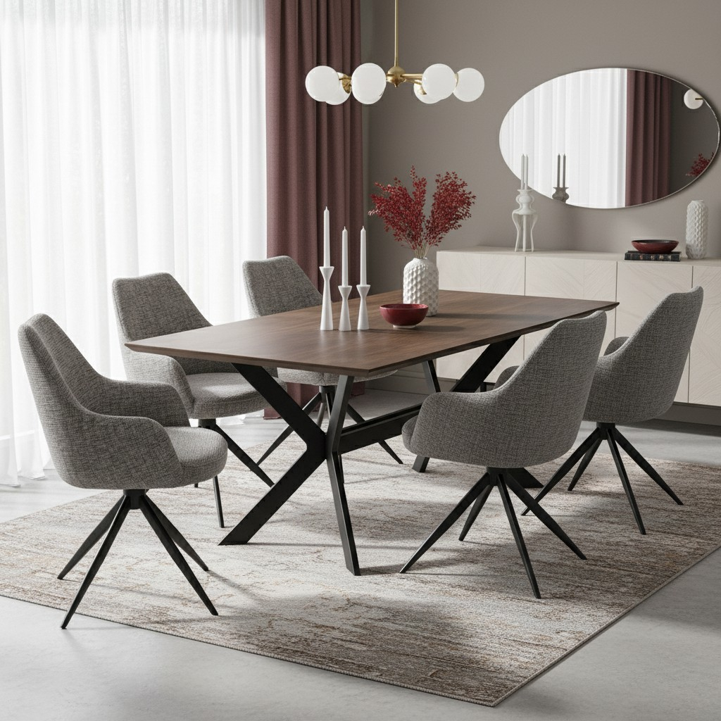 Jídelní židle Lyanna nabízí pohodlí a moderní design, který se perfektně hodí do každé jídelny či obývacího prostoru. Díky pevné kovové podnoži a kvalitní látce na sedací části je židle stabilní a příjemná na sezení. Konstrukce zajišťuje nosnost až 100 kg, což ji činí vhodnou pro běžné domácí užití.