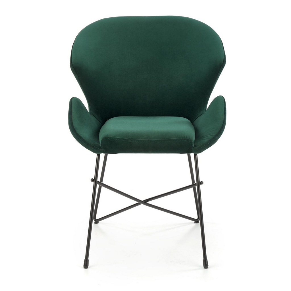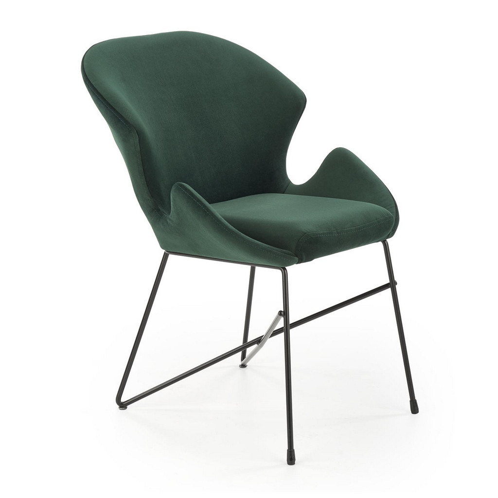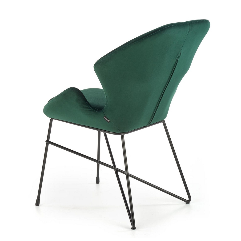 Opěrák i sedadlo jsou čalouněny látkou podobnou sametu, aby se vám sedělo pohodlně, kovová podnož zase zajistí stabilitu.