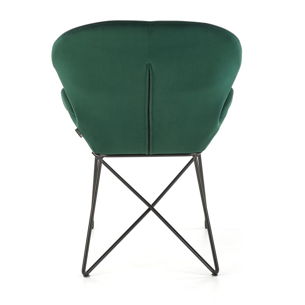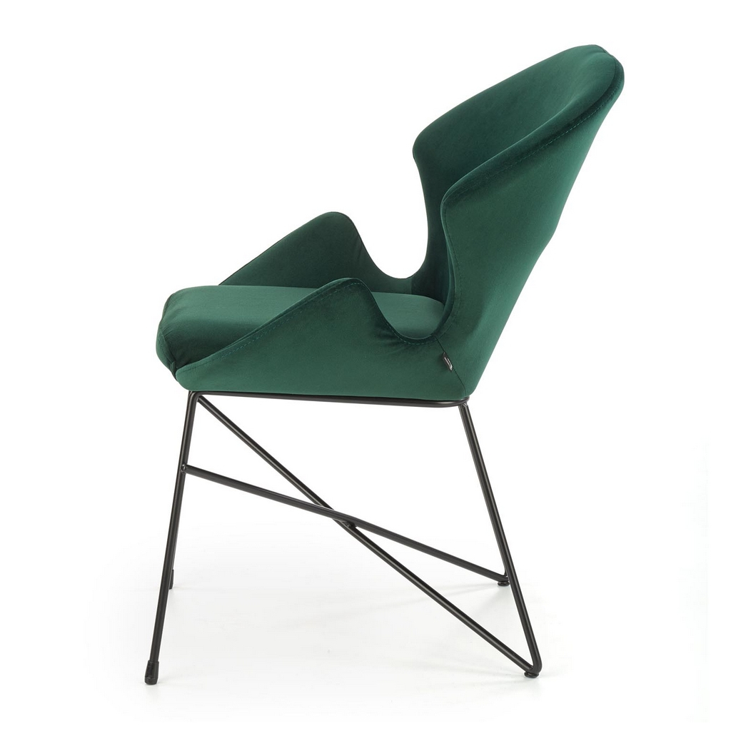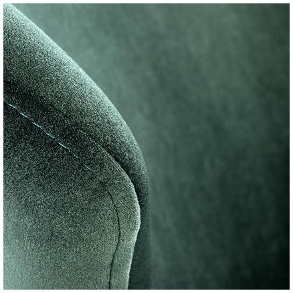 Opěrák i sedadlo jsou čalouněny látkou podobnou sametu, aby se vám sedělo pohodlně, kovová podnož zase zajistí stabilitu.