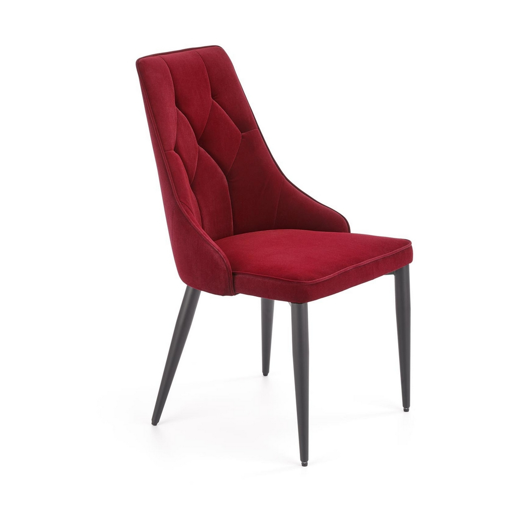 Tato jídelní židle je navržená v elegantním stylu. Skvěle vynikne nejen v kavárnách, ale hodí se i do restaurací a domácností. Její konstrukce je utvořená z práškované oceli. Je potažená příjemnou látkou. Opěrák zdobí prošívka. Unese až 100 kg.