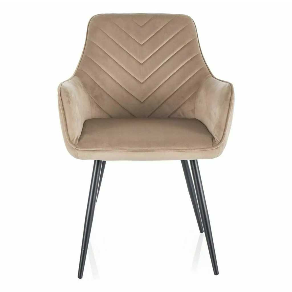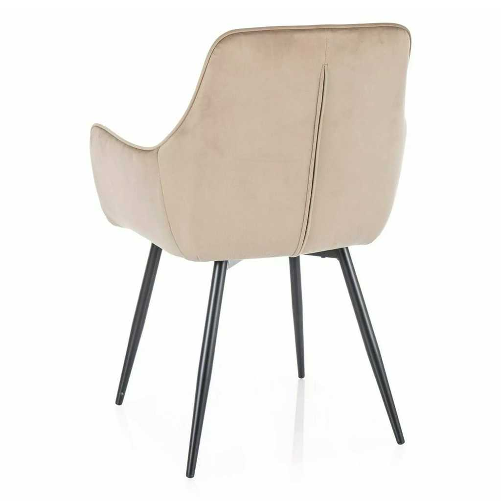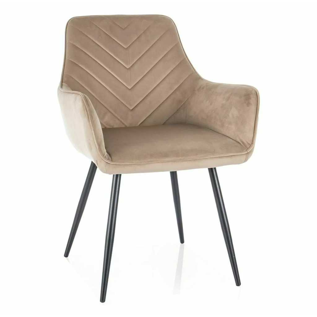 Čtyřnohá kovová podnož nejen, že je zárukou perfektní stability, ale zároveň dodává židli styl. Navíc svým provedením v místnosti působí vzdušně. V kombinaci se sedákem potaženým sametovou látkou s moderním prošíváním tvoří dohromady vkusný kousek.