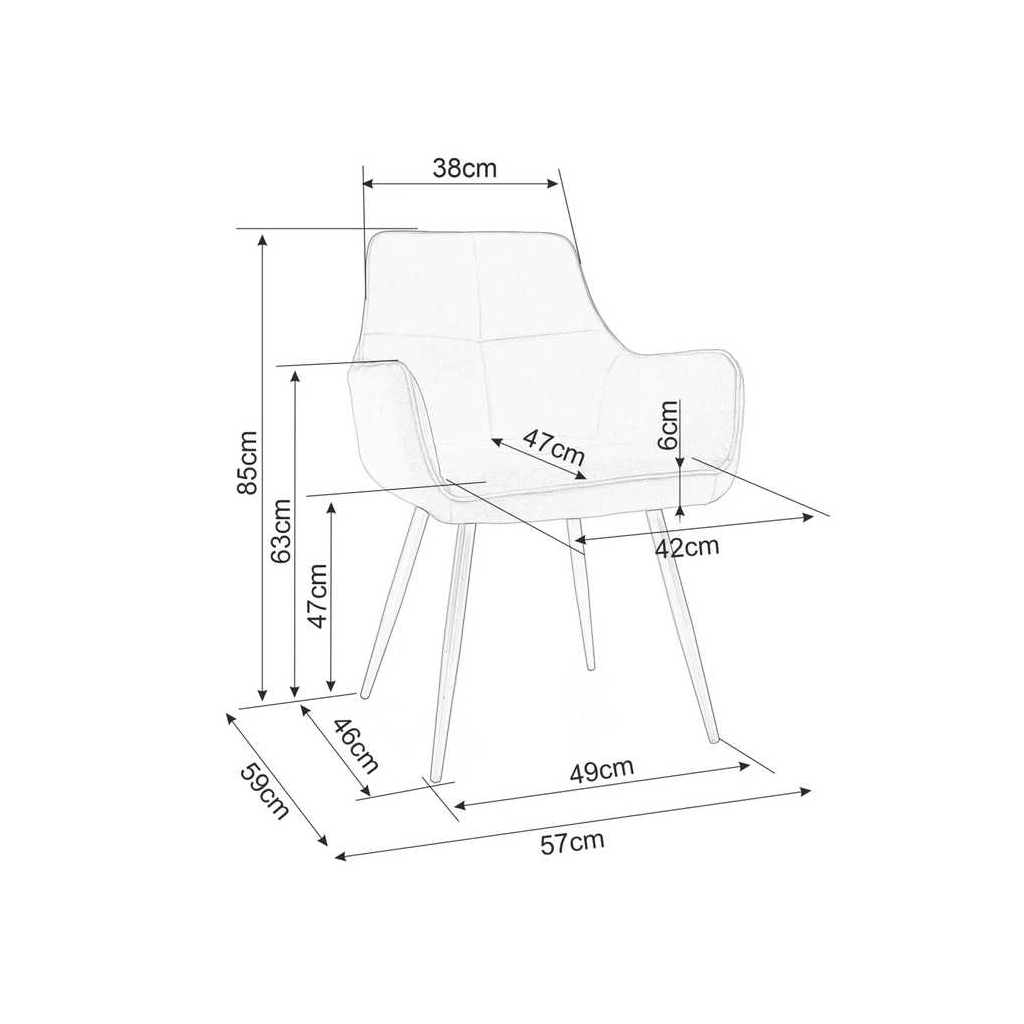 Čtyřnohá kovová podnož nejen, že je zárukou perfektní stability, ale zároveň dodává židli styl. Navíc svým provedením v místnosti působí vzdušně. V kombinaci se sedákem potaženým sametovou látkou s moderním prošíváním tvoří dohromady vkusný kousek.