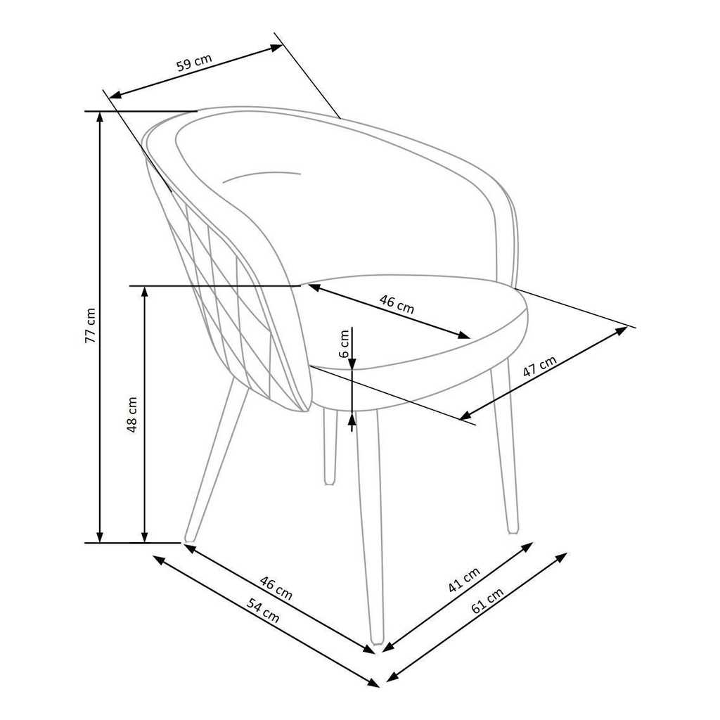 Její luxusní vzhled umocňuje potah z odolné tkaniny, která je velmi příjemná na omak a na vnější straně opěráku ještě efektně prošívaná. Polstrovaný sedák poskytne maximální pohodlí. Kovové nohy židli zajistí naprostou stabilitu.