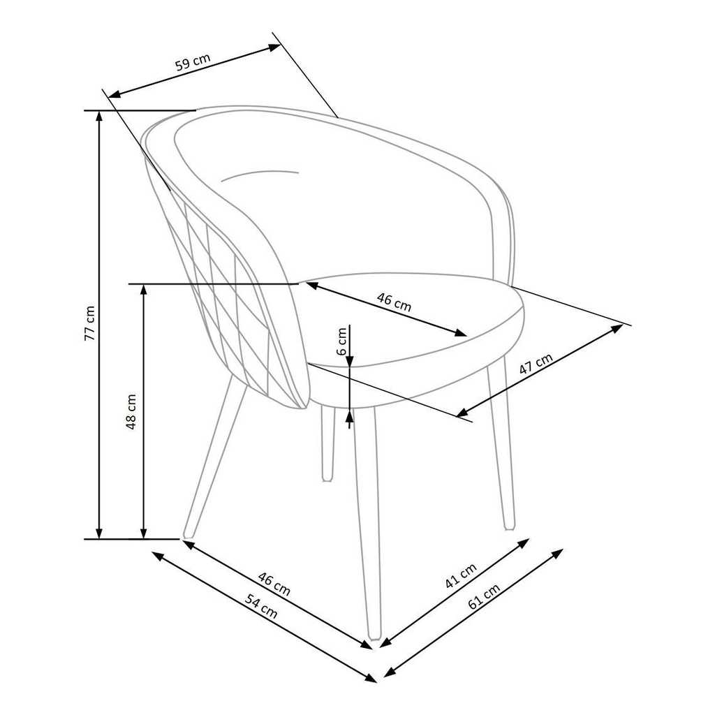 Její luxusní vzhled umocňuje potah z odolné tkaniny, která je velmi příjemná na omak a na vnější straně opěráku ještě efektně prošívaná. Polstrovaný sedák poskytne maximální pohodlí. Kovové nohy židli zajistí naprostou stabilitu.