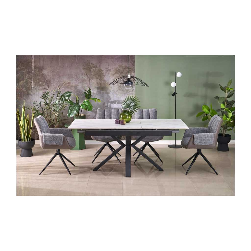 Jídelní židle Mindy nabízí komfortní posezení díky kombinaci materiálů – kůže a látky – které zajišťují příjemný pocit a odolnost. Robustní kovová podnož poskytuje stabilitu a dlouhou životnost, přičemž nosnost židle je až 120 kg. Ideální volba pro moderní jídelny, kde oceníte spojení praktičnosti a elegantního designu.