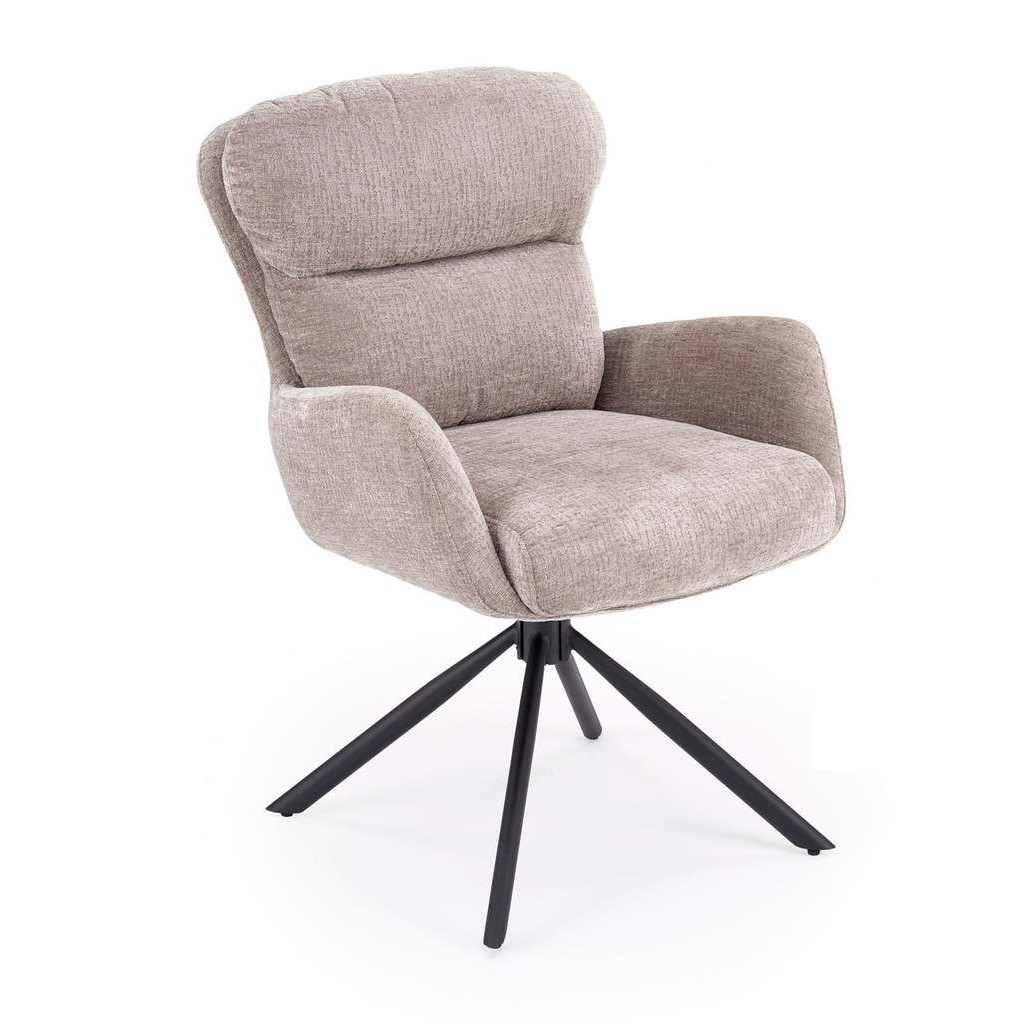 Výplň z kvalitní látky a pevná kovová podnož zajišťují dlouhou životnost a stabilitu, zatímco otočný mechanismus přispívá k většímu komfortu při sezení. Židle je navíc vybavena pevnými područky, které poskytují další oporu a zvyšují pohodlí během stolování.