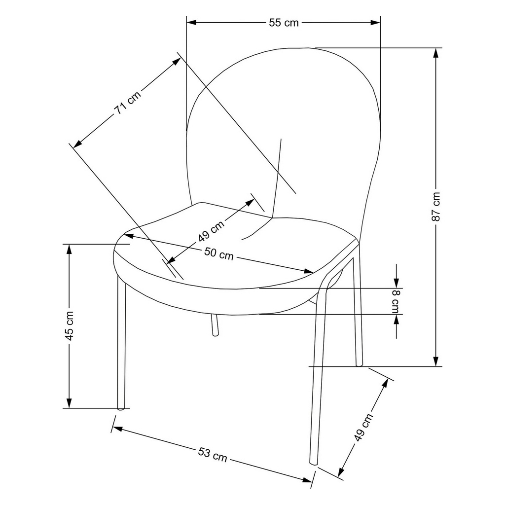 Rozměry jídelní židle Novak
