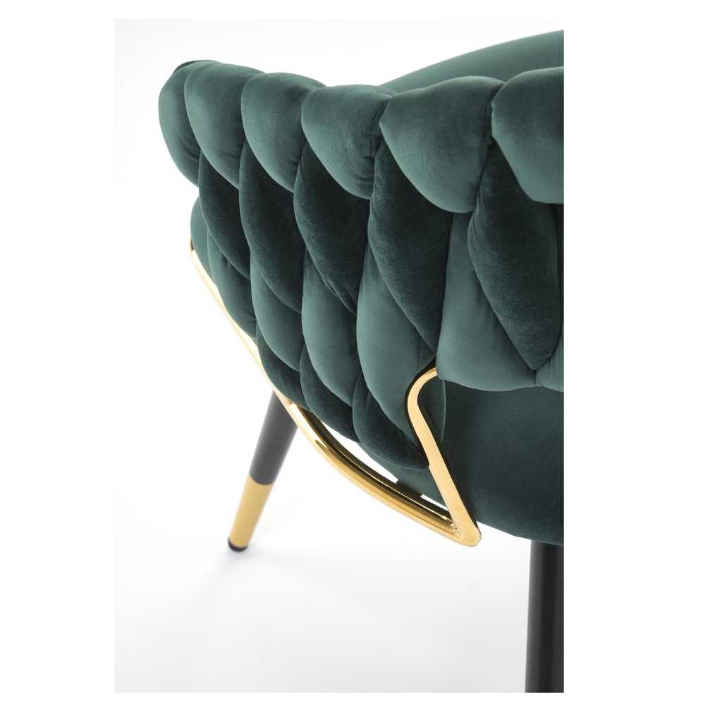 Váš komfort si bere na starost čalounění z látky podobné sametu. Ta nabízí prestižní vzhled, je příjemná na dotyk a odolná vůči vsakování tekutin. Zajímavým designovým prvkem je proplétání potahu mezi kovovými výztuhami opěradla.