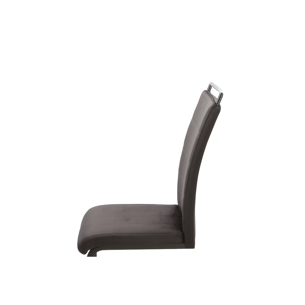 Nevšedně řešená kovová konstrukce nese polstrovaný sedák. Ten, spolu s opěrákem zad, je čalouněný sametovou látkou. Prošívání dodává židli moderní nádech. Pro pohodlnou manipulaci slouží madlo, které je součástí opěráku.