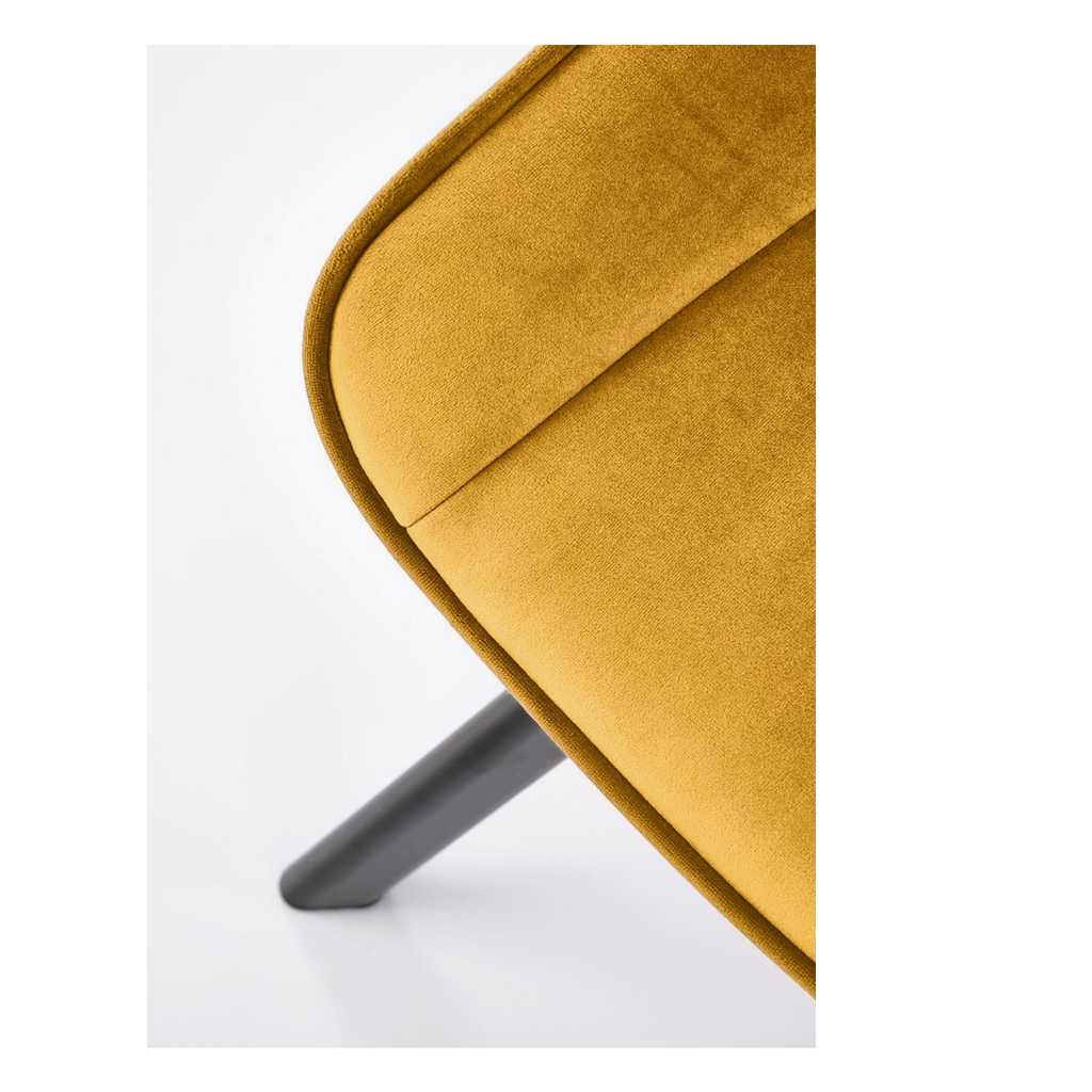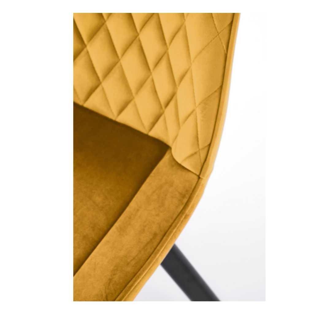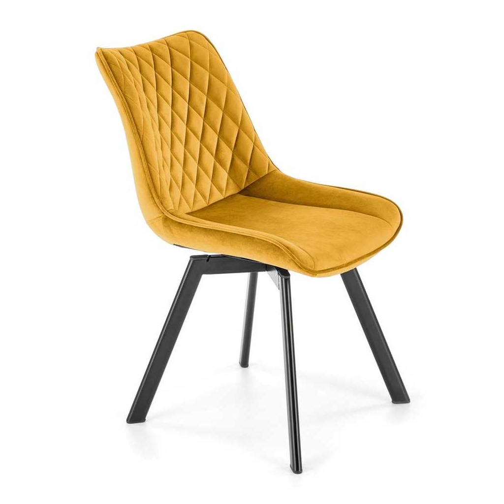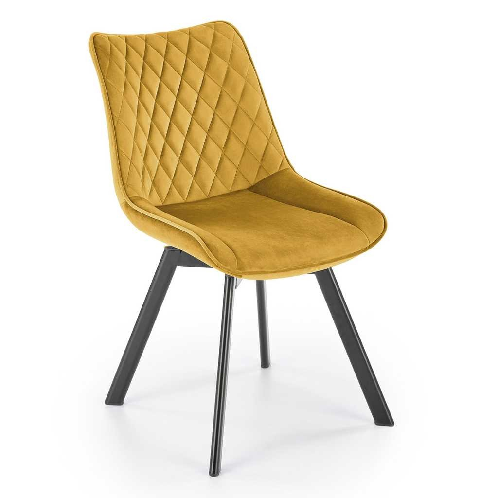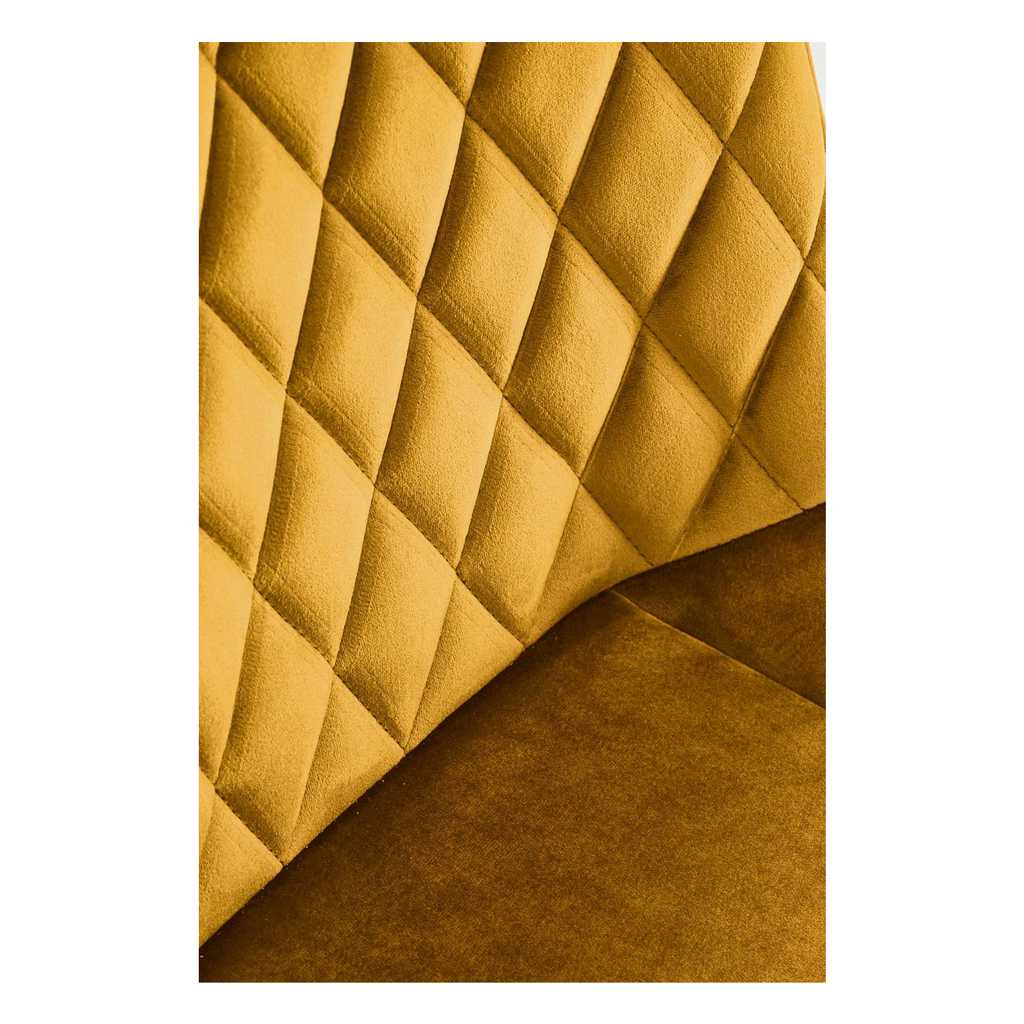 Sedadlo je čalouněné hebkou látkou s kosočtvercovým vzorem na opěradle. Tento vkusný designový prvek ozvláštňuje jinak minimalistický vzhled židle.