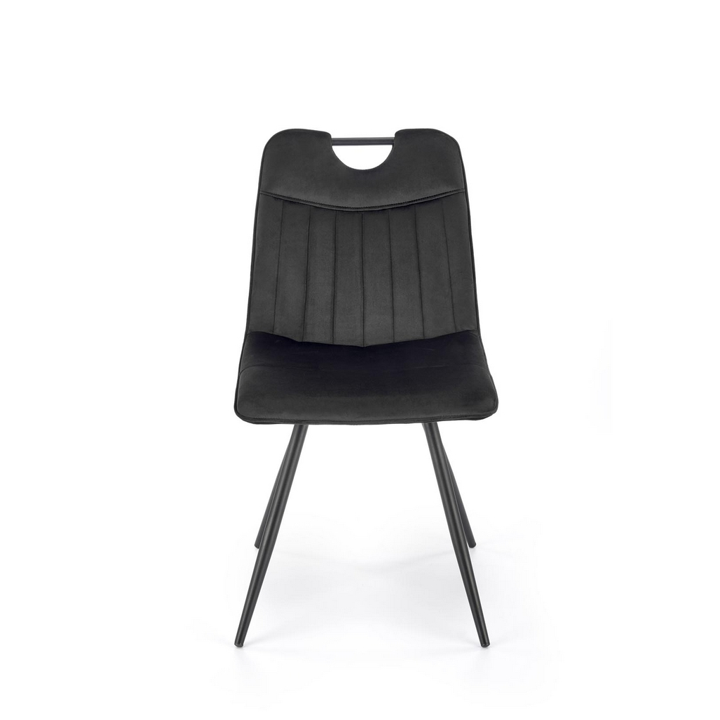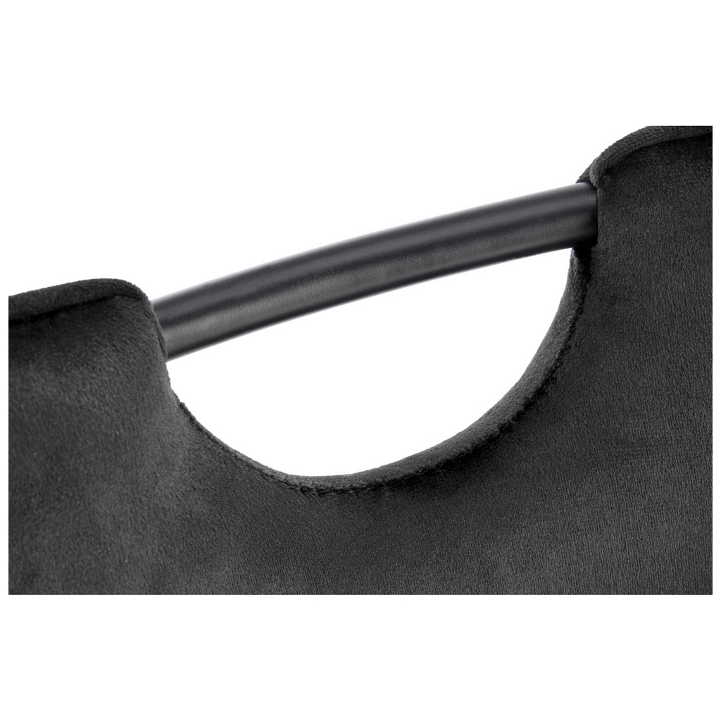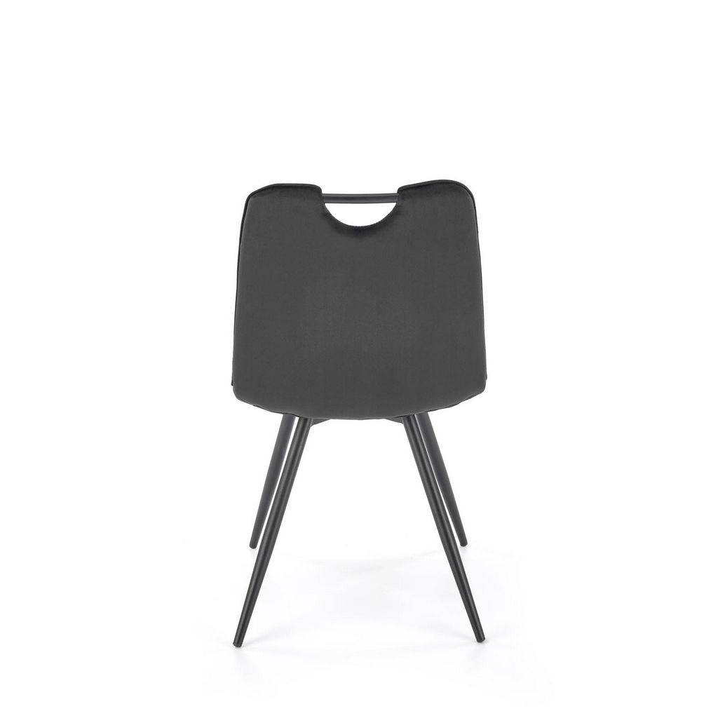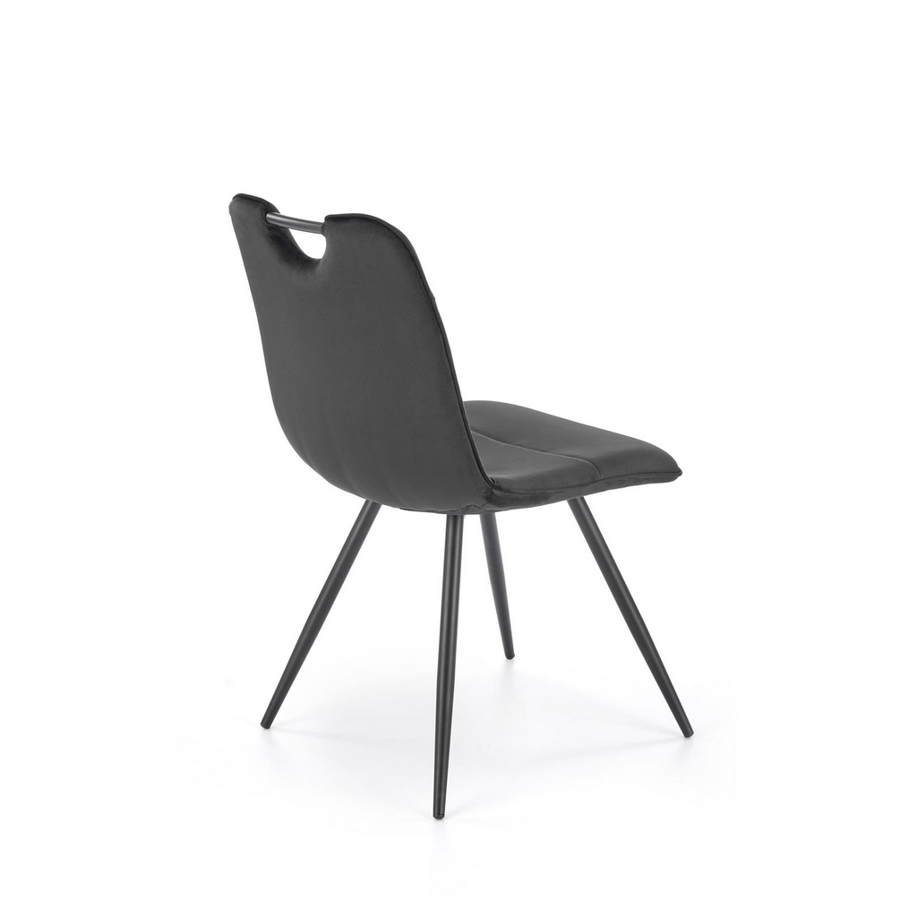 Sedadlo je čalouněné hebkou látkou s dekorativním vzorem na opěradle. Část výztuhy opěradla je bez čalounění a slouží jako madlo, díky kterému židli kdykoli snadno přemístíte.